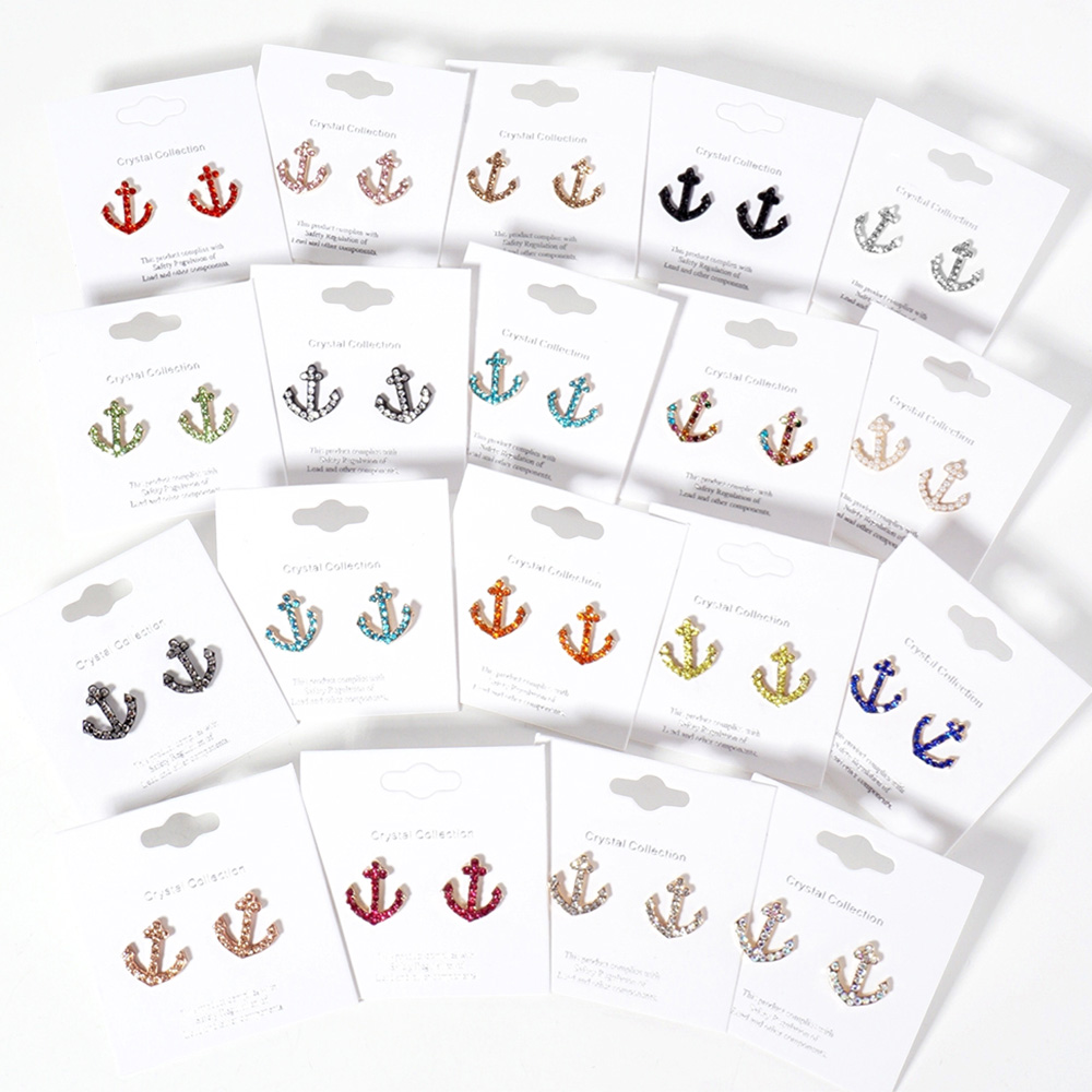 Crystal Rhinestone Paved Anchor Stud Earrings