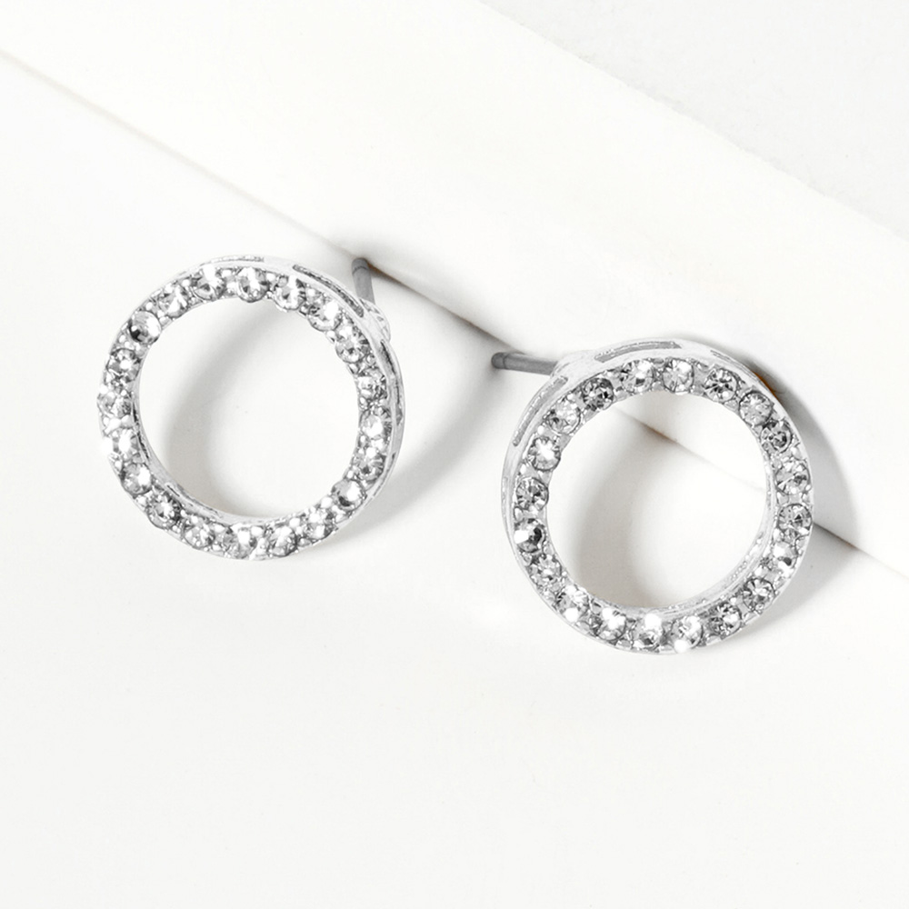 Crystal Rhinestone Paved Open Circle Stud Earrings