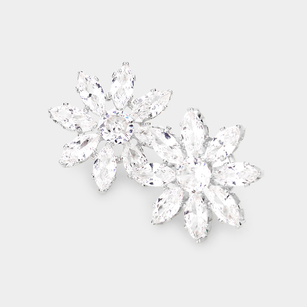 Floral Marquise Stone Cluster Dangle Evening Earrings