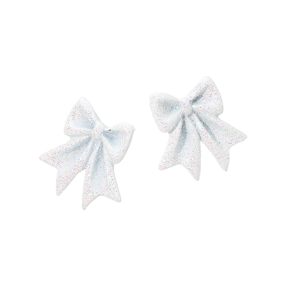 • Charming bow shaped earrings with a sparkling glitter finish for a playful yet elegant touch. Perfect for casual outfits or festive occasions, these statement studs add a whimsical sparkle to any look while keeping your style fresh, fun, and effortlessly chic.