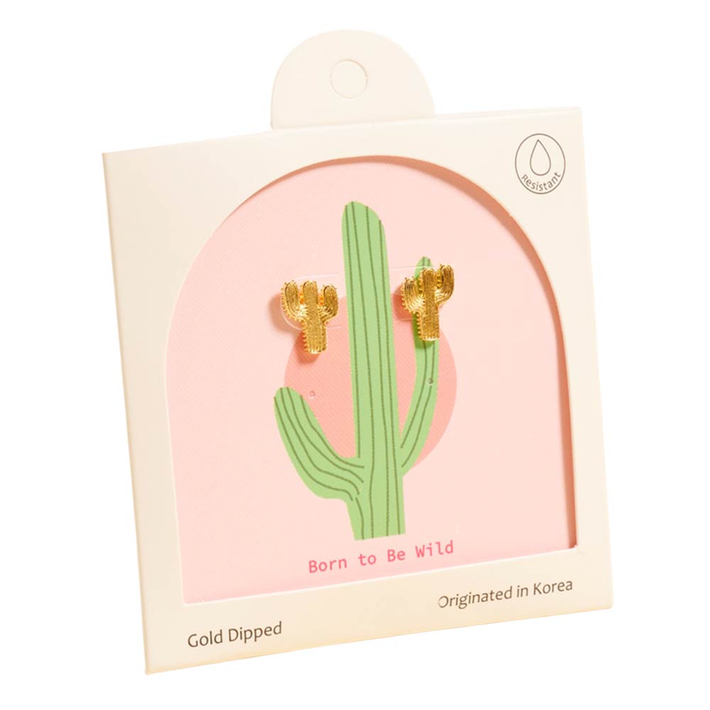 Details • Size : 0.3" X 0.3" • Post Back • Western-inspired cactus stud earrings with a playful desert motif that adds character to everyday looks. Ideal for rodeo outfits, country style, festival wear, and novelty gift displays. A fun addition to western boutiques, themed collections, and customers drawn to bold, free-spirited accessories. • Gold Dipped • Hypoallergenic • Made In Korea