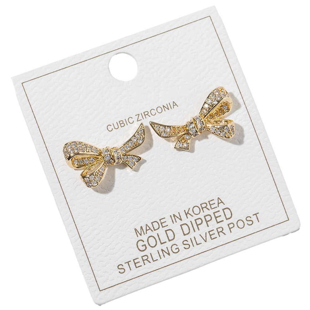 Gold Dipped CZ Pave Bow Knot Stud Earrings