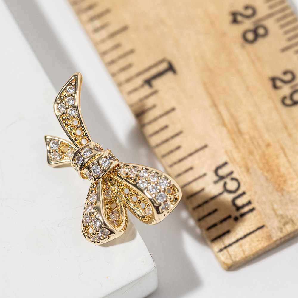 • Elegant bow-shaped stud earrings designed with delicate pavĂ© sparkle for a refined, feminine finish. This timeless silhouette adds charm to everyday outfits, special occasions, and gift collections, offering a polished accent that pairs effortlessly with both casual and dressy jewelry styling.