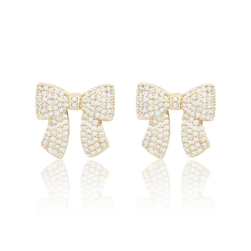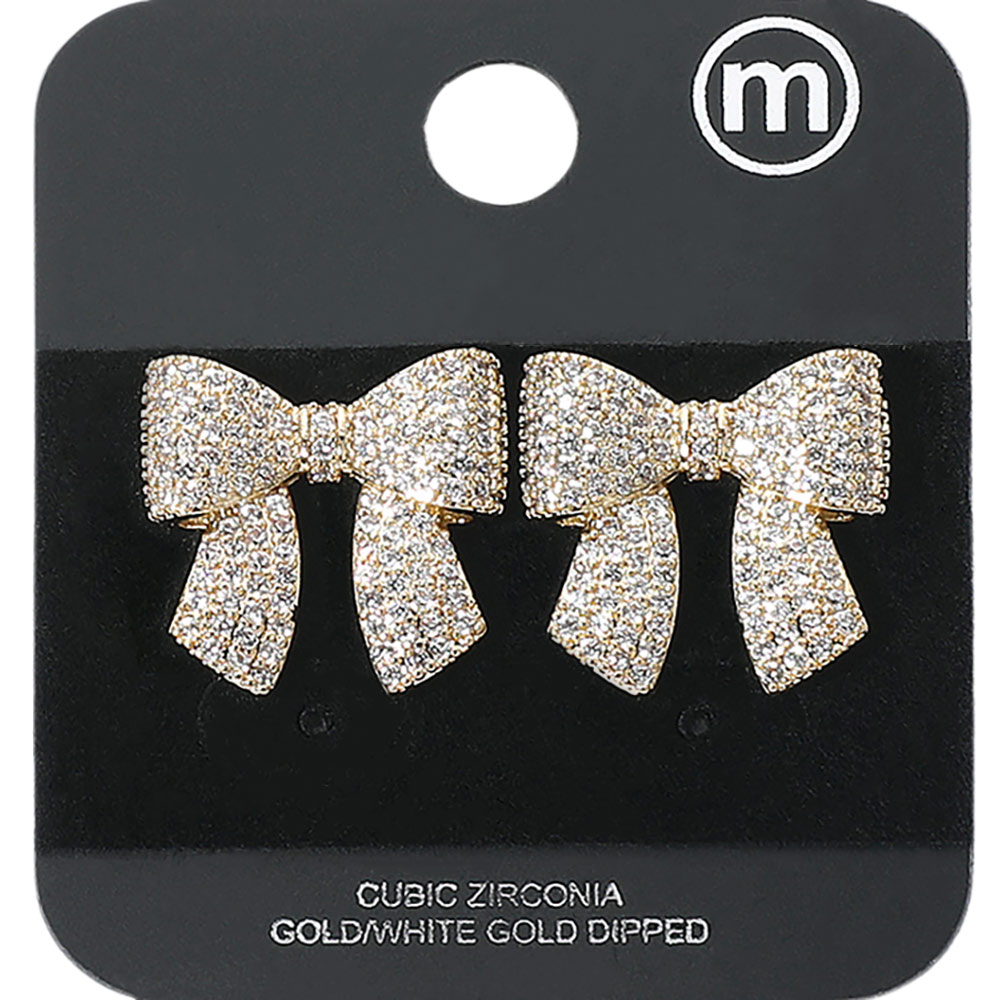 Gold Dipped CZ Stone Paved Bow Stud Earrings