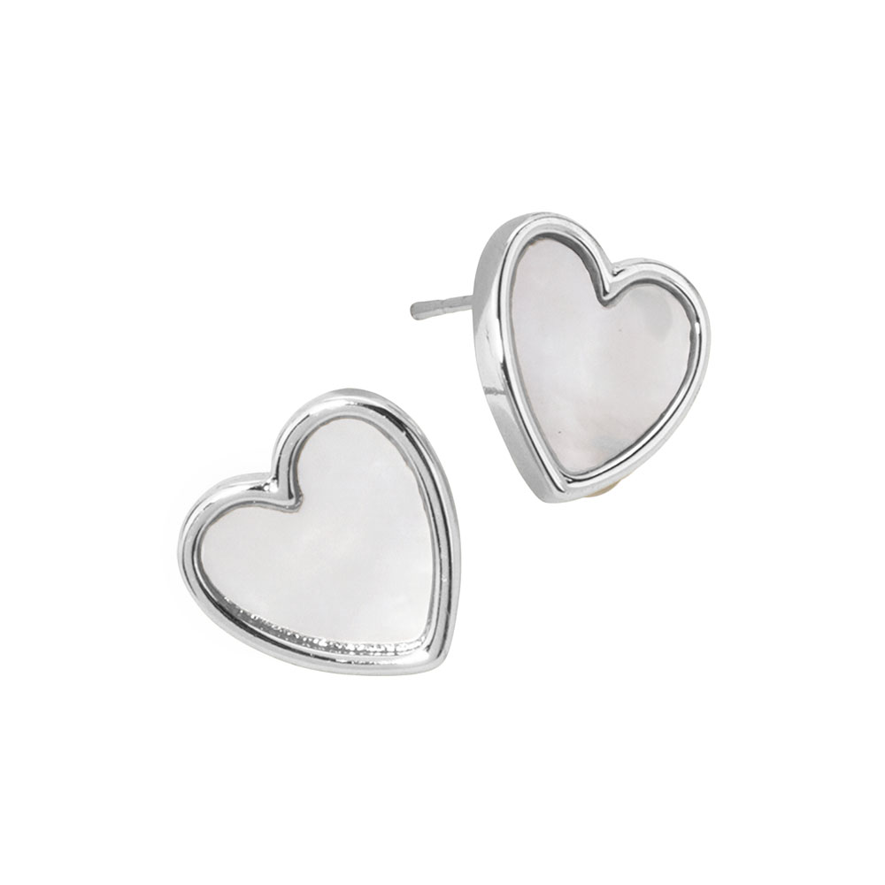 Details • Size : 0.5" X 0.5" • Charming heart shaped mother of pearl stud earrings featuring a bold outlined design that adds a playful and modern touch. Lightweight and easy to wear, these cute studs make a perfect everyday accessory or a thoughtful gift for someone who loves fun statement pieces. • Made In Korea • Gold Dipped • Sterling Silver Post