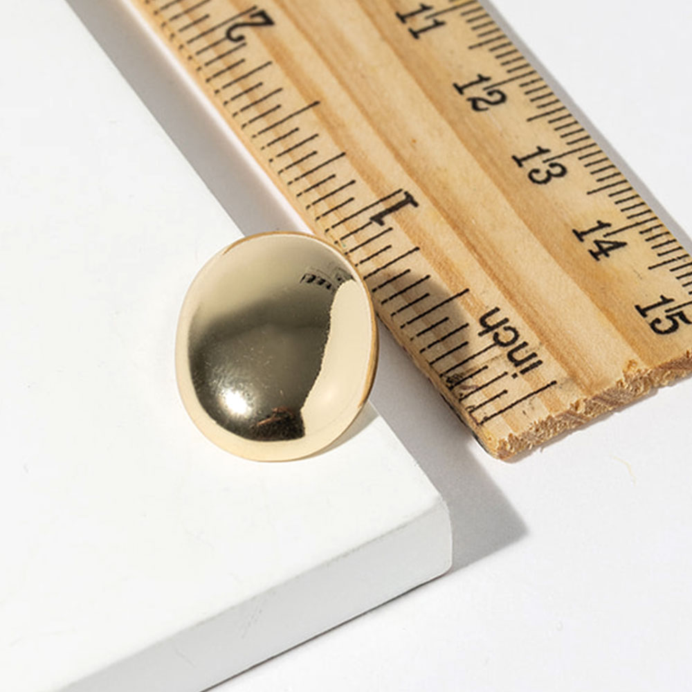 • Minimal oval stud earrings designed with a sleek, polished surface and softly rounded shape. These timeless studs deliver a refined, modern look that pairs easily with casual or dress styles, offering everyday versatility and effortless elegance for a wide range of fashion collections.