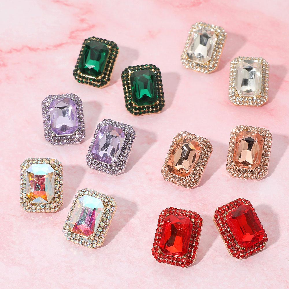 Details • Size : 0.7" X 0.75" • Post Back • Make a statement with these iridescent rectangular stud earrings. Framed with sparkling rhinestones, they’re the perfect accessory for adding refined glamour to any outfit, from formal events to everyday chic. • Lead and Nickel Compliant