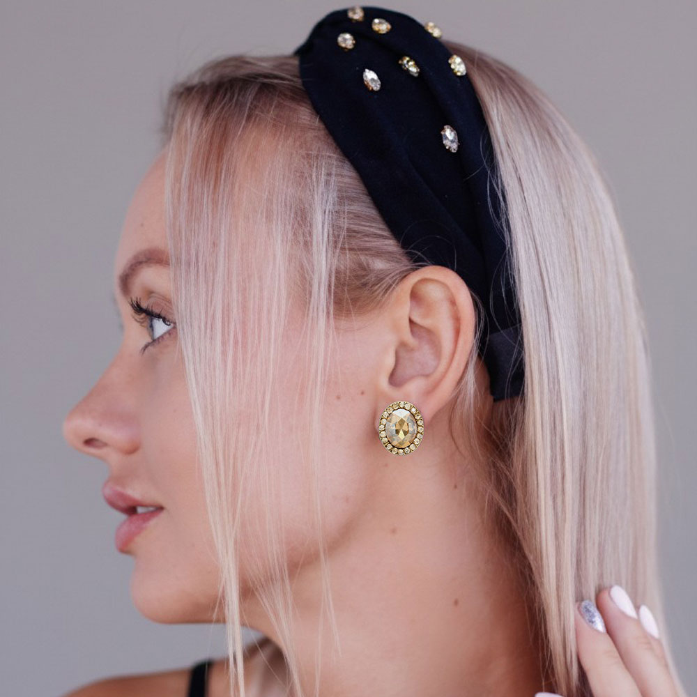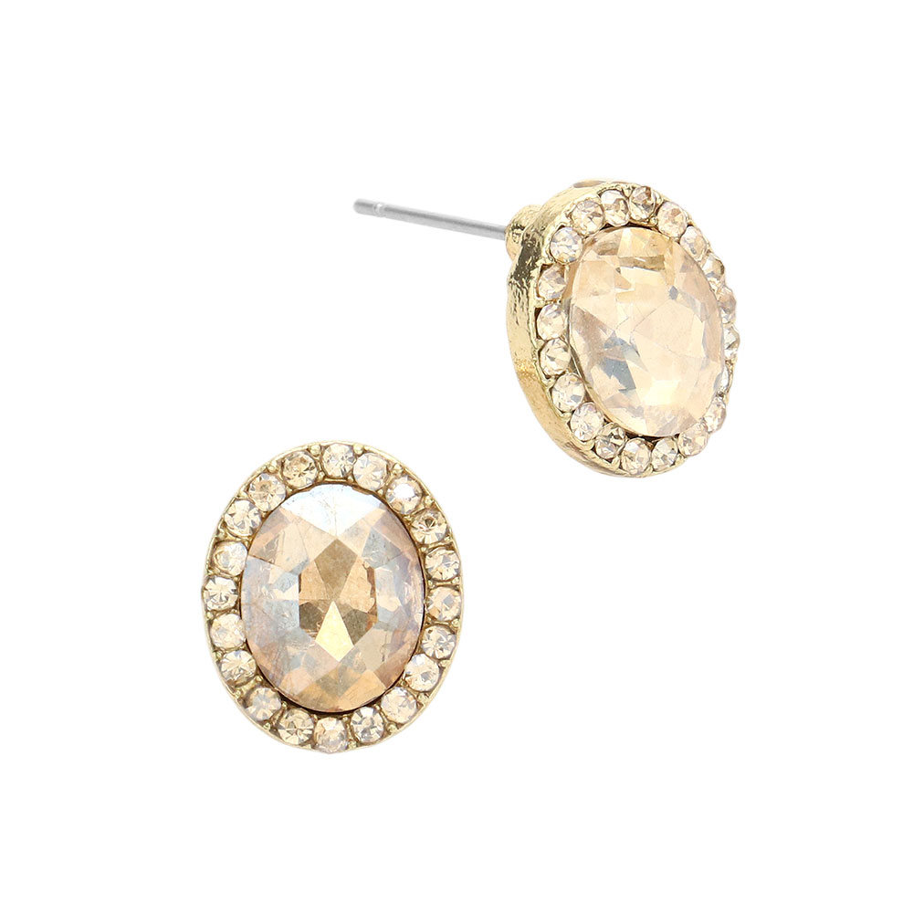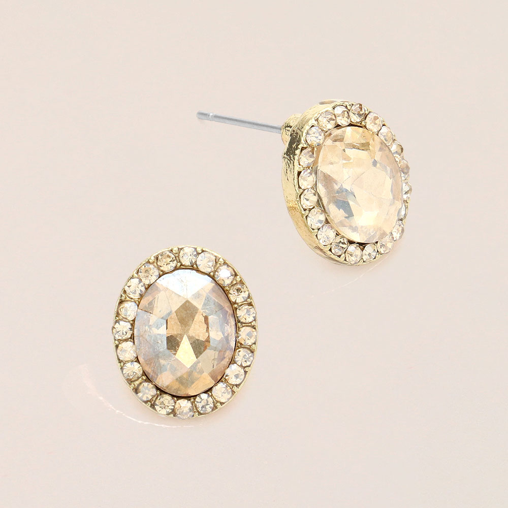 Oval Stone Stud Evening Earrings