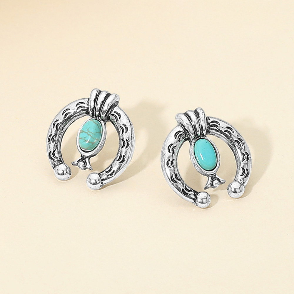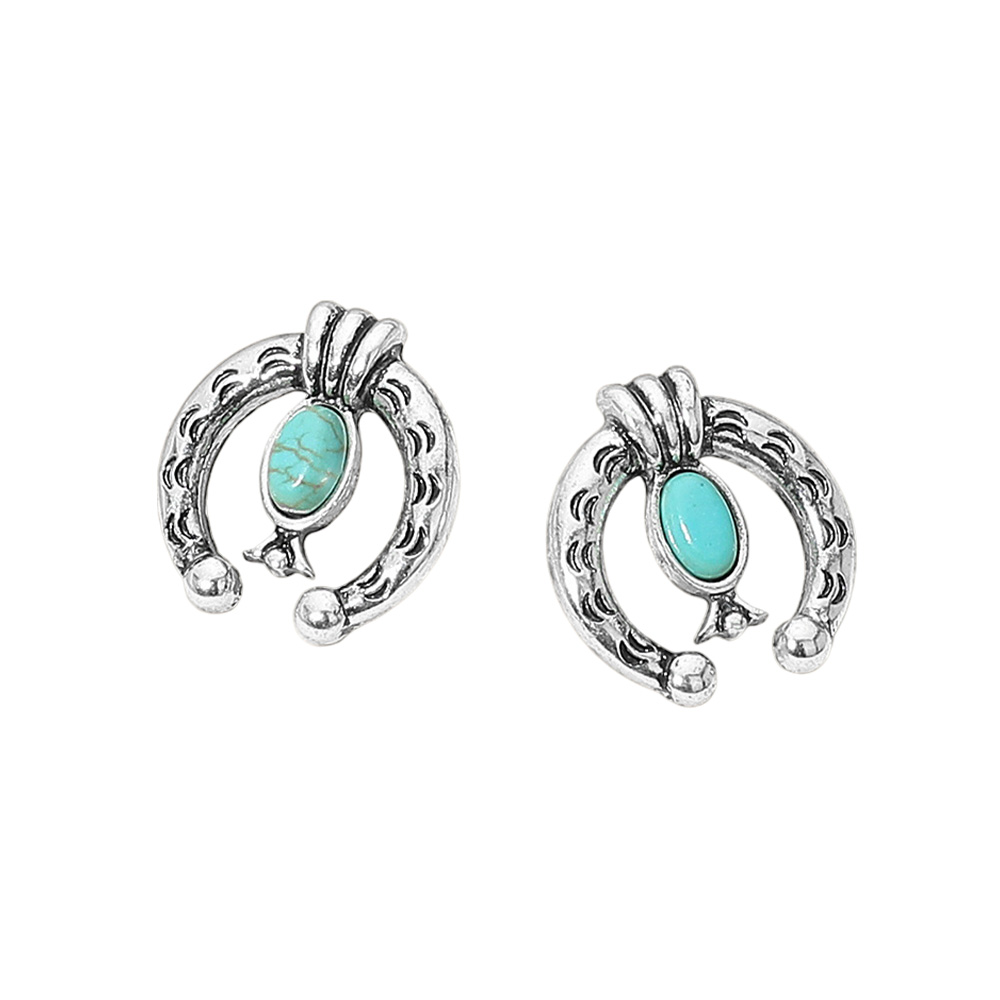 Oval Turquoise Stone Accent Western Horseshoe Stud Earrings Oval Turquoise Stone Accent Western Horseshoe Stud Earrings