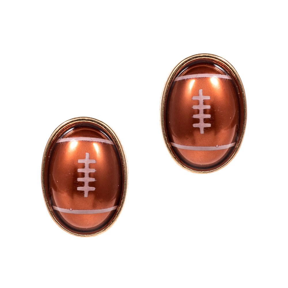 Details • Size : 0.6" X 0.5" • Titanium Post Back • Fun football stud earrings designed with a classic stitched ball motif for sporty, everyday appeal. Lightweight and easy to wear, these studs are perfect for game day outfits, casual looks, team events, and gifting, adding playful character to boutique accessory collections and fan-focused styling. • Lead and Nickel Compliant • Hypoallergenic