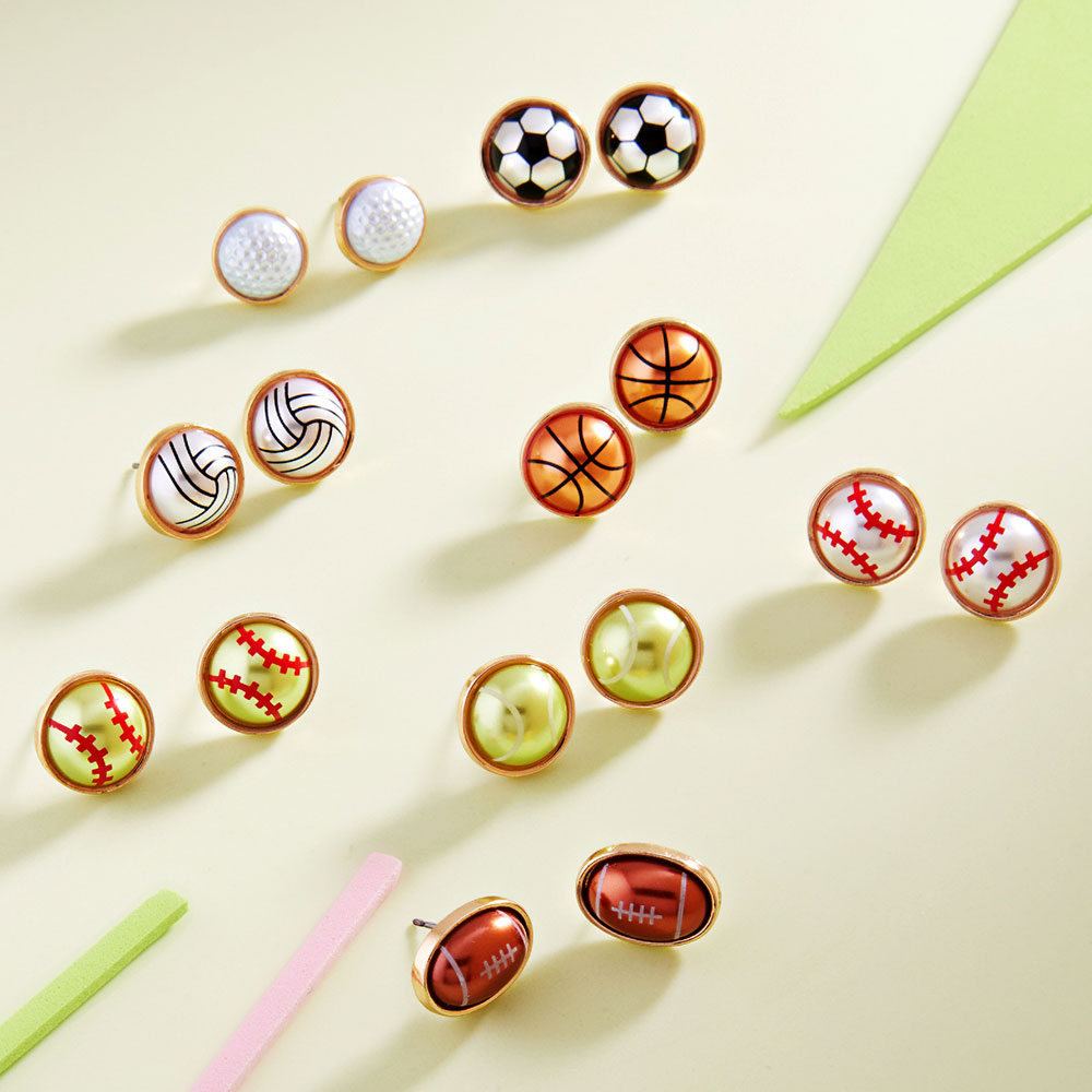 • Fun softball stud earrings designed with a classic stitched ball motif for sporty, everyday appeal. Lightweight and easy to wear, these studs are perfect for game day outfits, casual looks, team events, and gifting, adding playful character to boutique accessory collections and fan-focused styling.