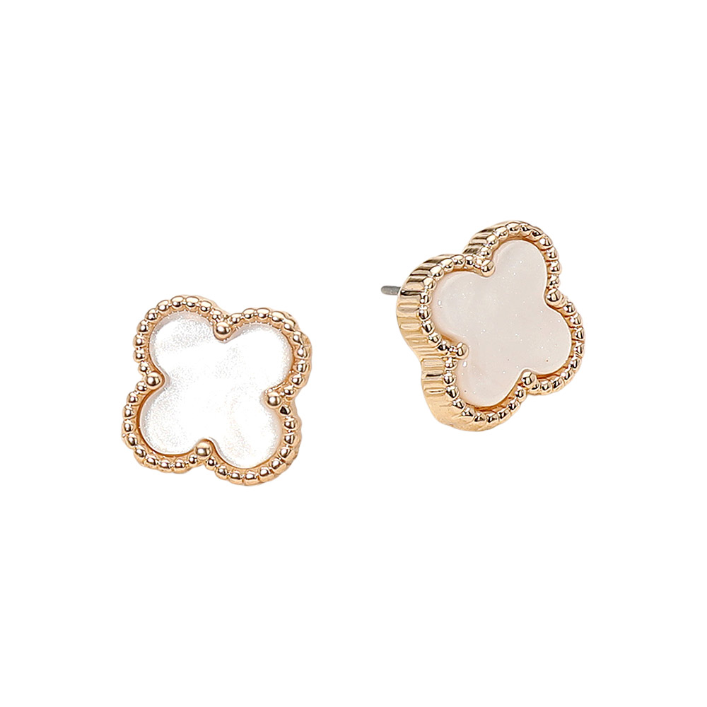 • Stylish stud earrings featuring a quatrefoil shape framed with textured trim for a chic, timeless look. Perfect for elevating everyday outfits or pairing with elegant attire, these earrings offer a touch of sophistication and modern simplicity in one graceful design.