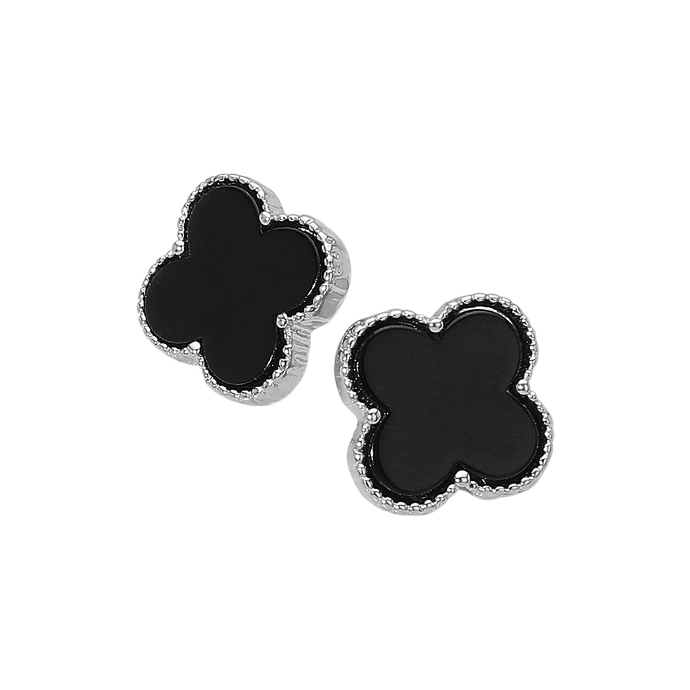 • Stylish quatrefoil stud earrings featuring a smooth, glossy center framed by a detailed beaded outline. A refined, symmetrical shape adds a touch of sophistication to everyday outfits. Lightweight, versatile, and perfect for gifting or enhancing any jewelry collection.