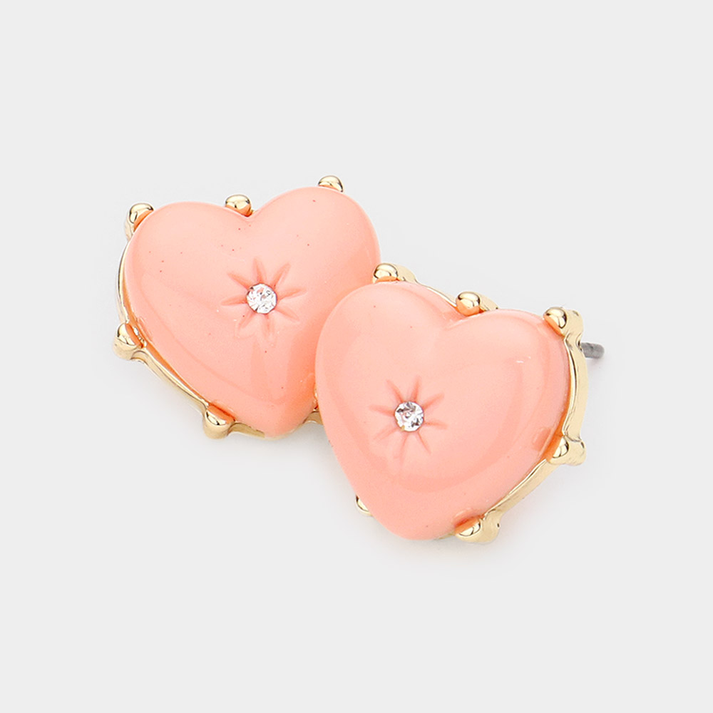 Rhinestone Centered Resin Heart Stud Earrings