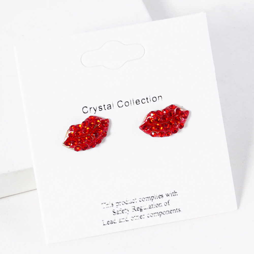 • Chic lip-shaped stud earrings accented with sparkling crystal pave detailing. A playful yet stylish accessory that adds personality to any look, perfect for everyday wear or gifting. Lightweight and easy to pair with casual or dressy outfits.
