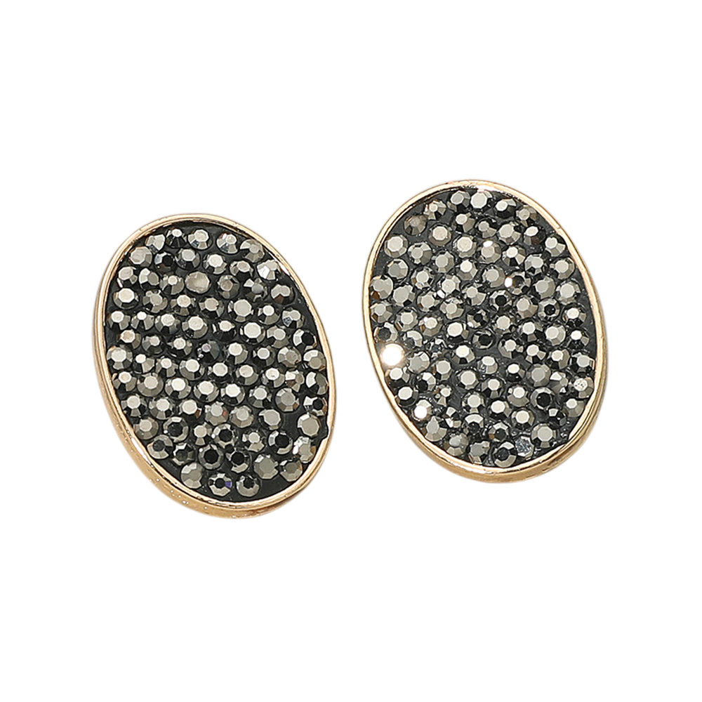 Details • Size : 0.75" X 1" • Post Back • Elegant oval stud earrings encrusted with shimmering rhinestones for a radiant finish. Lightweight and versatile, they add sparkle to casual outfits or evening attire. Perfect for everyday wear, parties, or gifting, these earrings offer timeless beauty and a touch of glamour to any jewelry collection. • Lead and Nickel Compliant