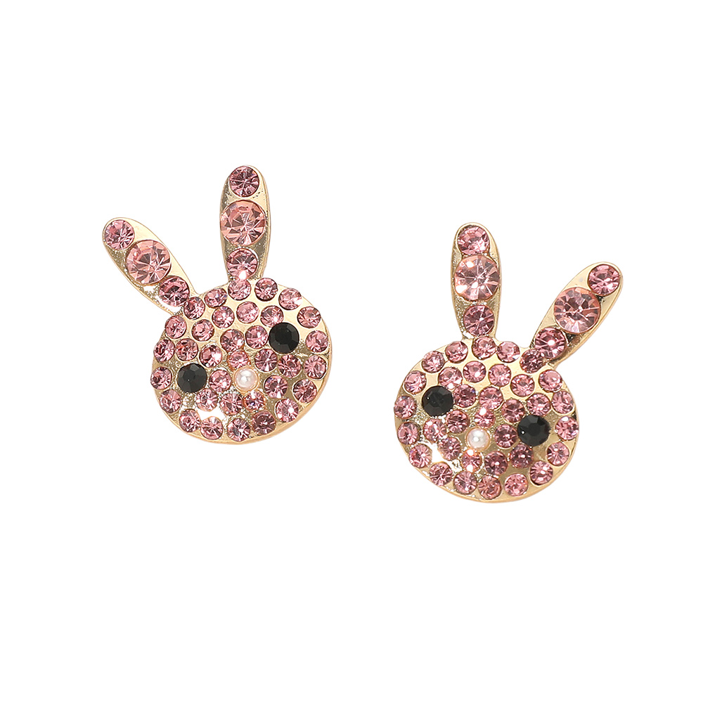 Details • Size : 0.7" X 1" • Post Back • Charming bunny stud earrings featuring a playful animal face silhouette with sparkling accents that catch the light beautifully. Designed to add a cute yet eye-catching touch to everyday looks, themed outfits, gift assortments, and novelty jewelry collections. • Hypoallergenic • Lead and Nickel Compliant