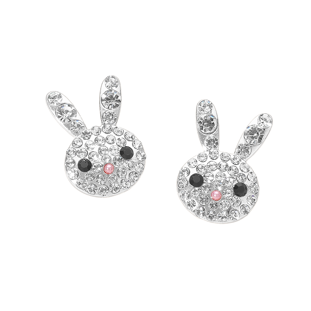 • Charming bunny stud earrings featuring a playful animal face silhouette with sparkling accents that catch the light beautifully. Designed to add a cute yet eye-catching touch to everyday looks, themed outfits, gift assortments, and novelty jewelry collections.