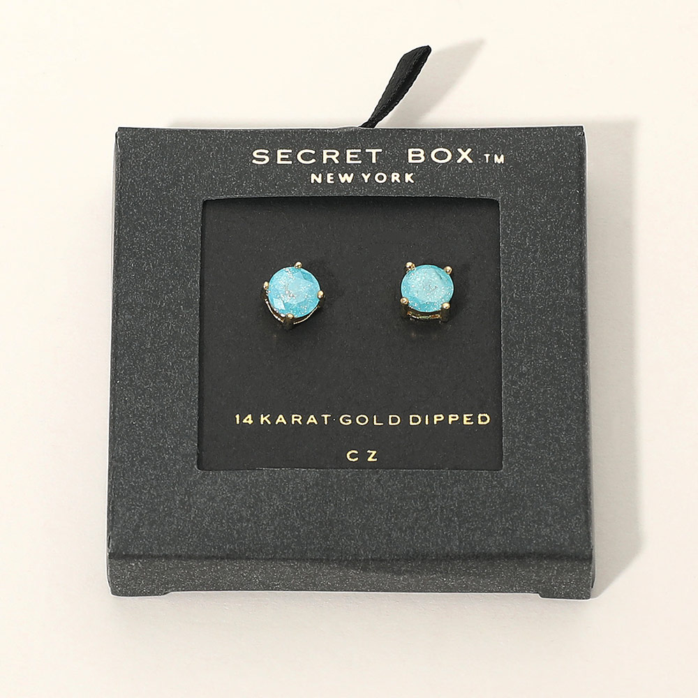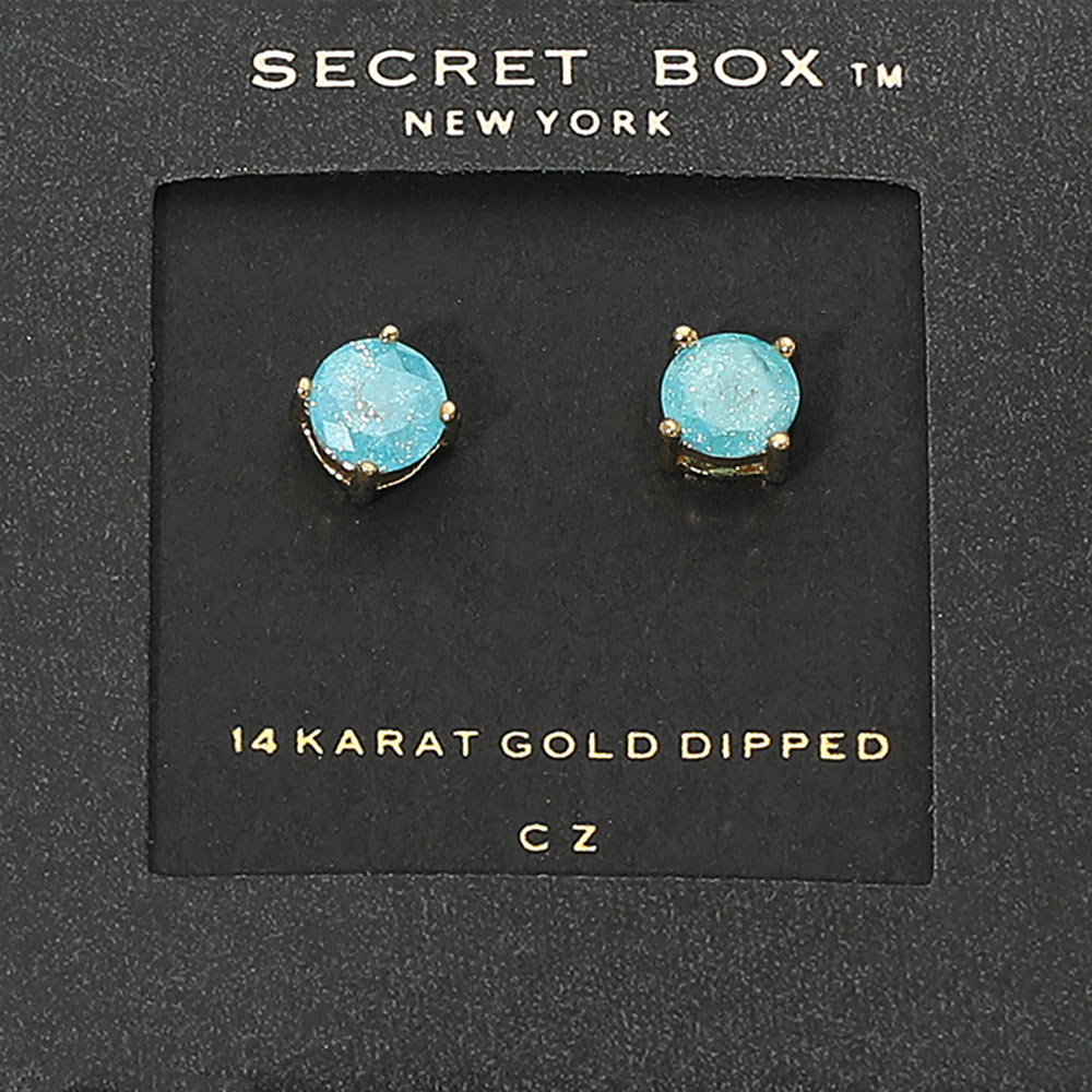 SECRET BOX_14K Gold Dipped CZ Round Stud Earrings
