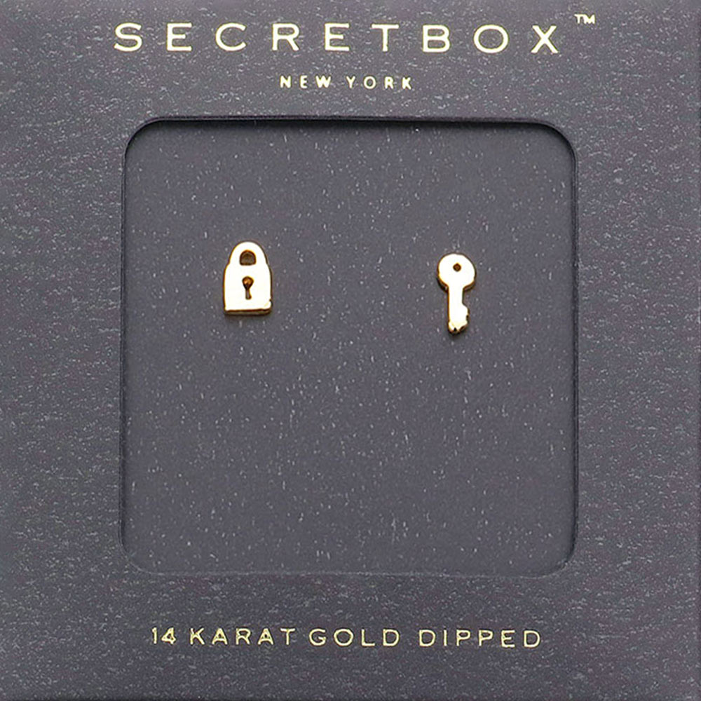 SECRET BOX_14K Gold Dipped Key & Lock Stud Earrings