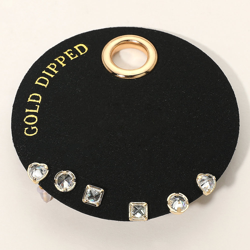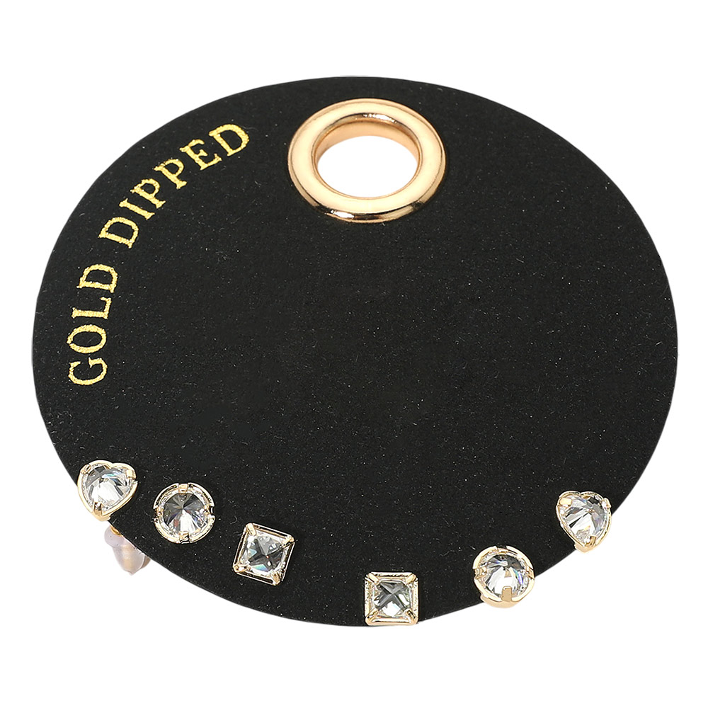 Details • Size : 0.25" L • Post Back • This versatile stud earring set features a mix of classic shapes designed for effortless everyday styling. Lightweight and comfortable, these studs are perfect for mixing and matching, stacking, or wearing solo. A timeless accessory set ideal for boutiques, gifting, and daily wear collections. • Gold Dipped