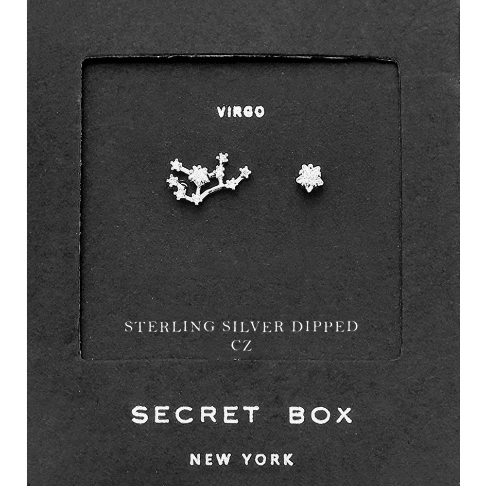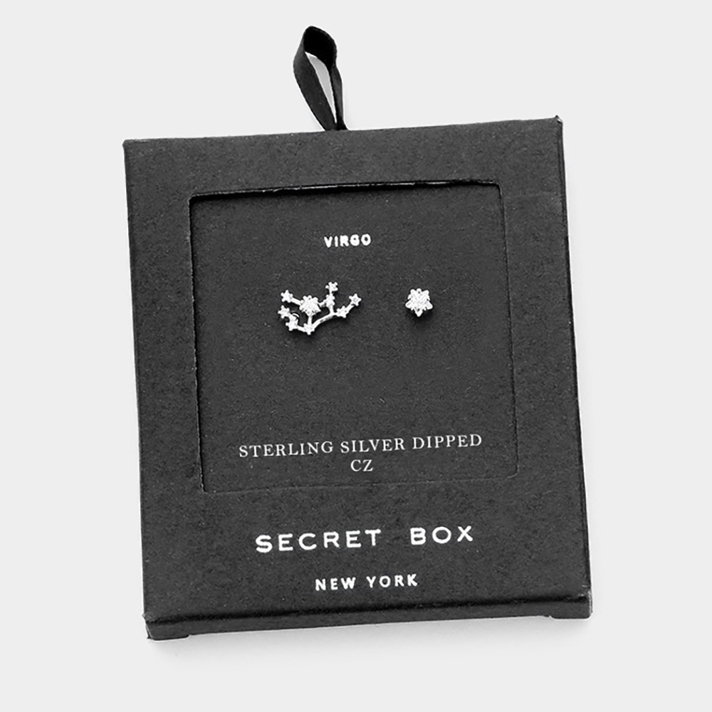 Secret Box_Sterling Silver Dipped CZ Stone Paved Virgo Zodiac Sign Stud Earrings