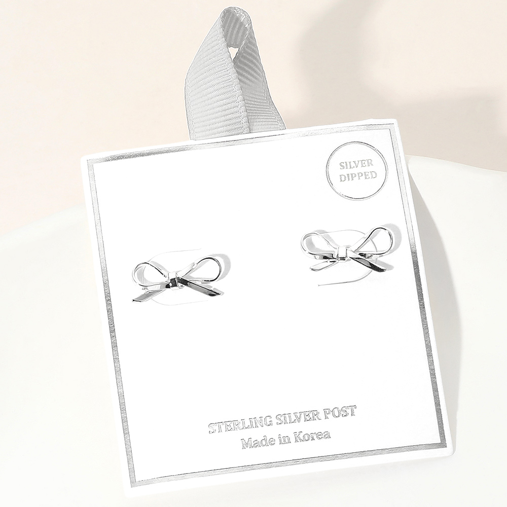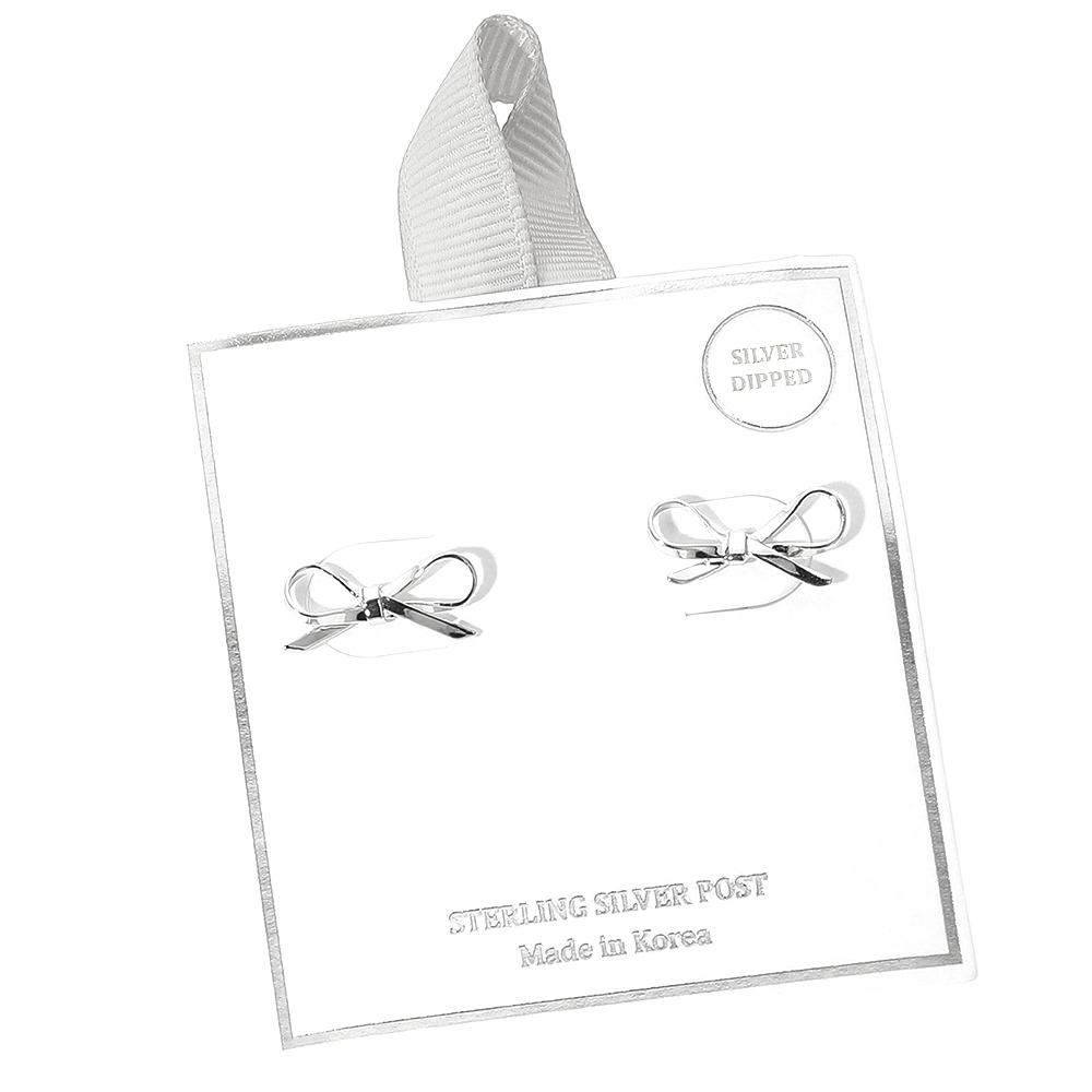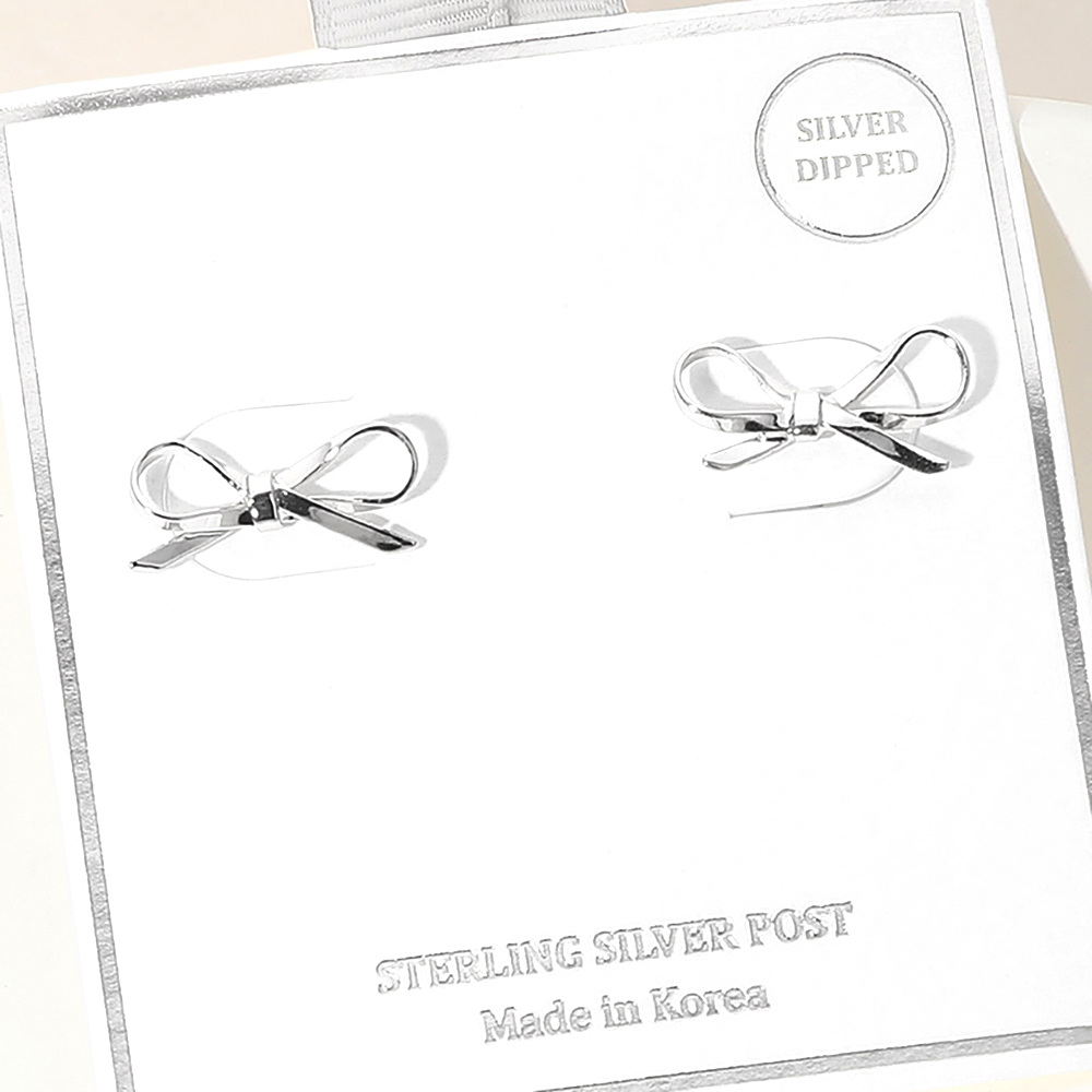 Details • Size : 0.7" X 0.3" • Charming bow knot post earrings designed with a delicate looped shape for a sweet, feminine touch. Lightweight and easy to wear with a secure post backing, they add a polished accent to everyday outfits or special occasions. A simple, elegant accessory that enhances any jewelry collection. • Sterling Silver Dipped • Lead and Nickel Compliant • Made In Korea • Sterling Silver Post