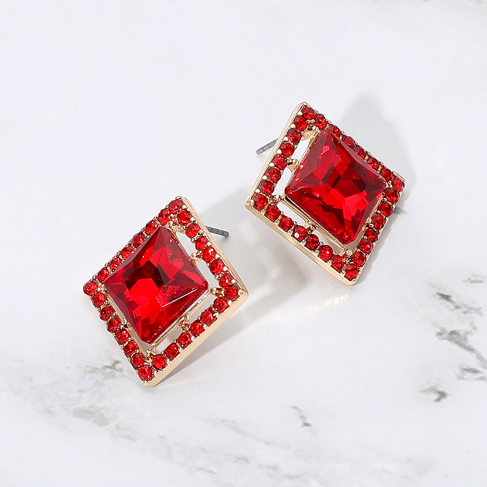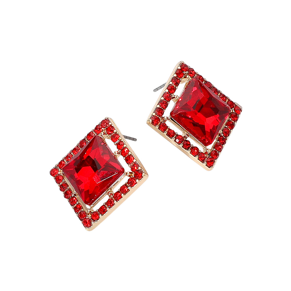Square Cut Gemstone Framed Evening Stud Earrings Square Cut Gemstone Framed Evening Stud Earrings