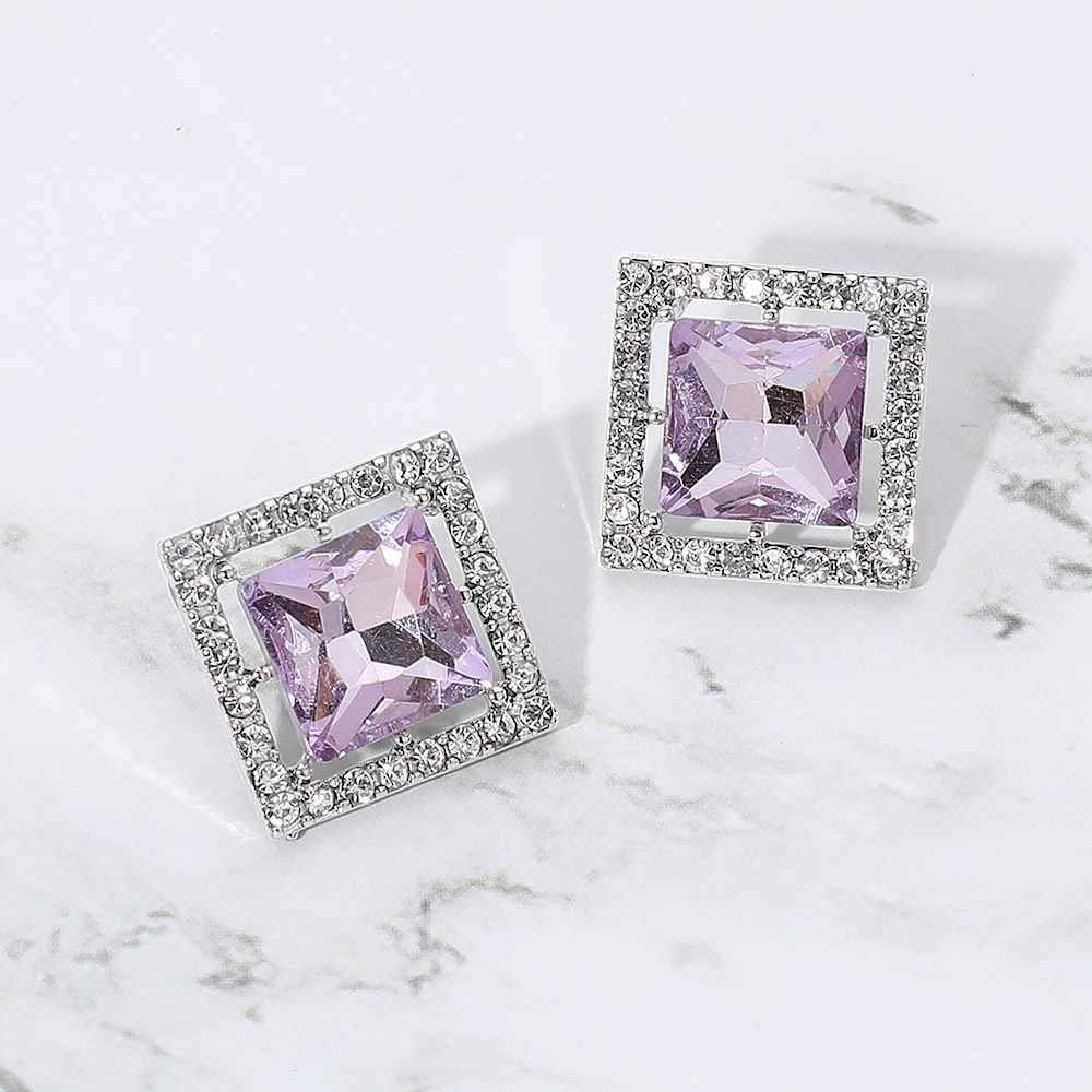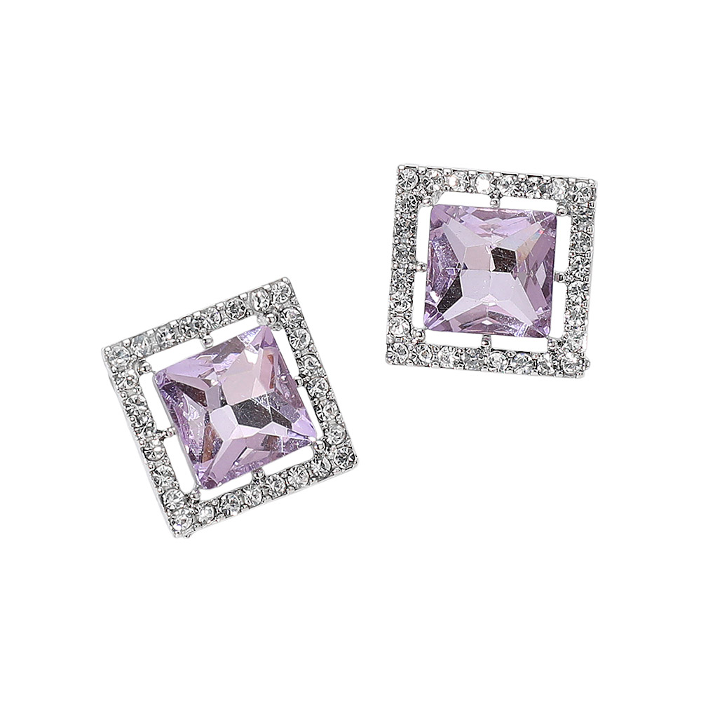 Square Cut Gemstone Framed Evening Stud Earrings Square Cut Gemstone Framed Evening Stud Earrings