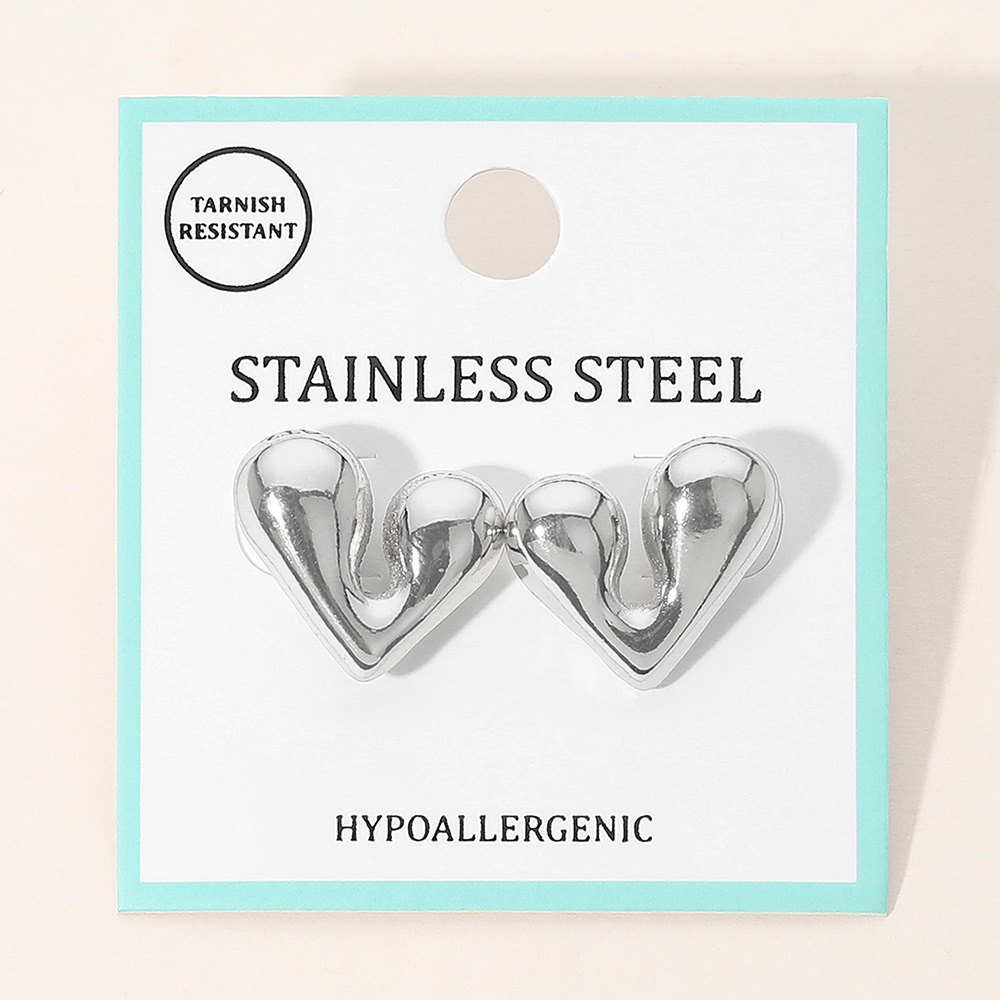 Stainless Steel Abstract Sculptural Heart Stud Earrings