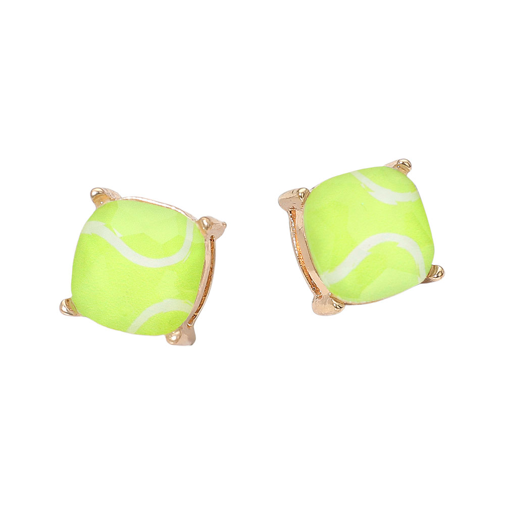 Tennis Ball Printed Square Stud Earrings Tennis Ball Printed Square Stud Earrings