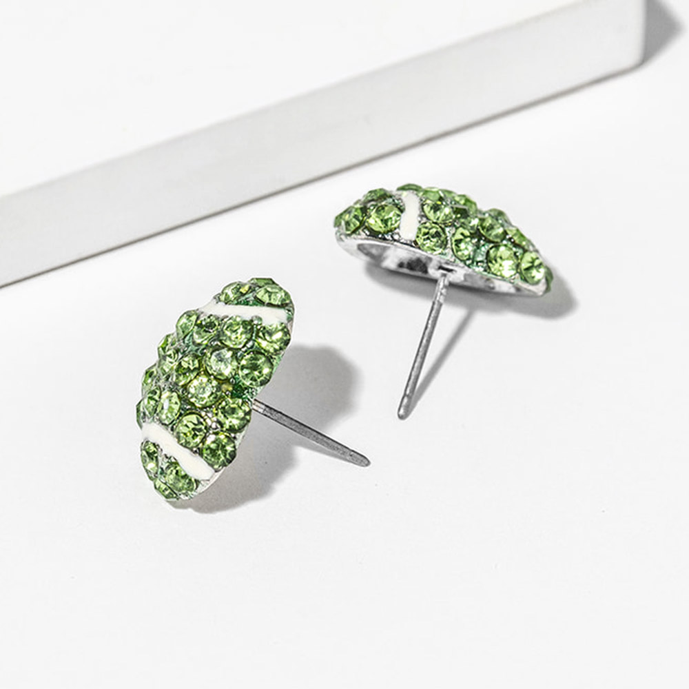 • These crystal sport ball theme stud earrings feature a brilliant pave design that sparkles with every movement. Their chic, modern silhouette adds a touch of luxury to any outfit, making them the perfect choice for both daily wear and special occasions that call for effortless sophistication.