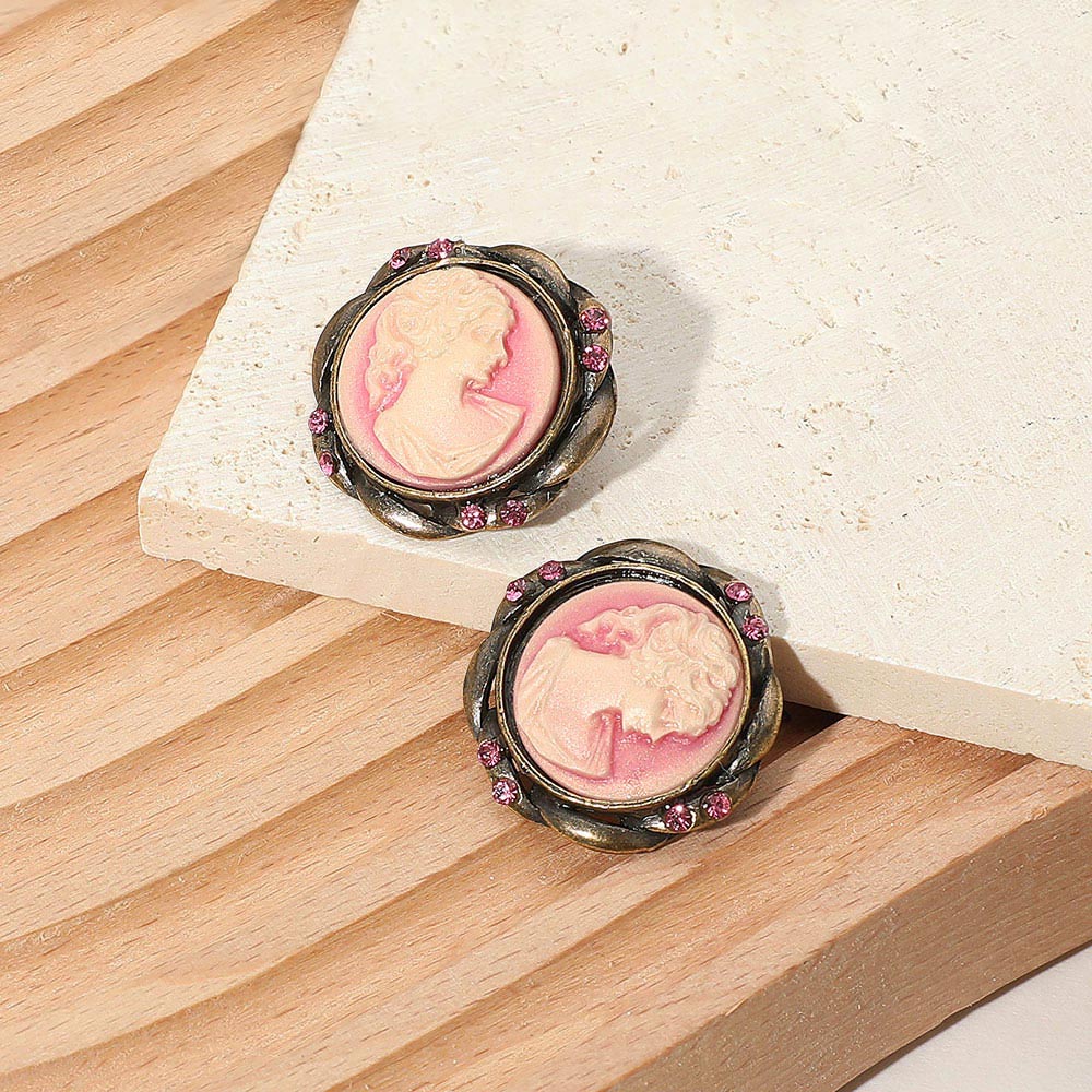 Details • Size : 0.9" X 0.9" • Post Back • Charming vintage-inspired cameo stud earrings showcasing classic profile portraits framed with sparkling rhinestones. These timeless earrings add elegance to everyday wear or special occasions, offering a sophisticated touch to any jewelry collection. • Lead and Nickel Compliant