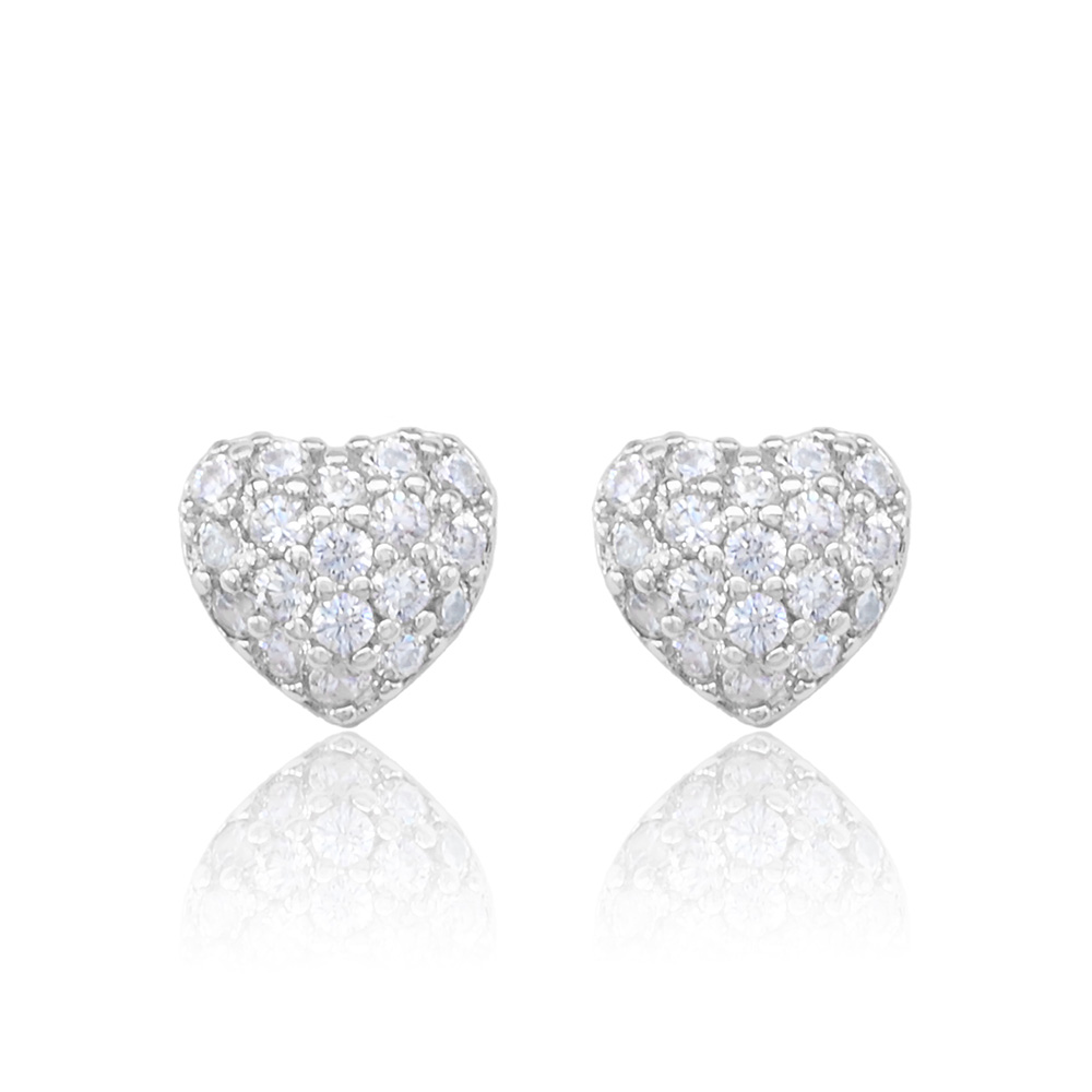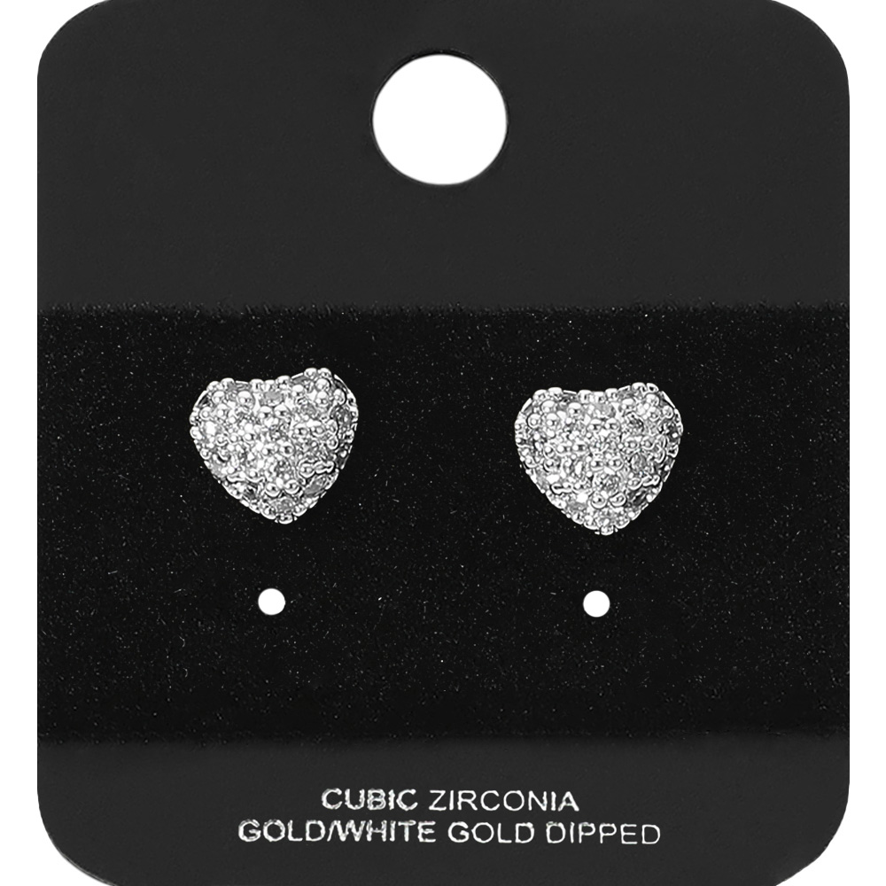 Details • Size : 0.4" X 0.4" • Post Back • Add a touch of romance with these heart shaped crystal stud earrings. Perfect for daily wear or special occasions, they bring timeless sparkle and charm to any jewelry collection. • CZ Cubic Zirconia • Gold Dipped • Lead and Nickel Compliant