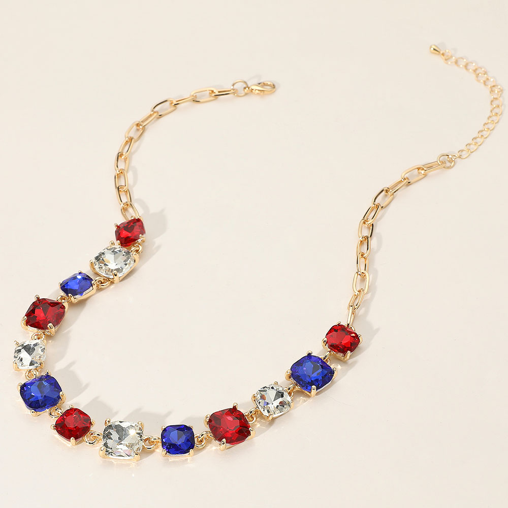• Elevate your style with this stunning square cut gemstone statement necklace. Featuring shimmering faceted stones linked in a classic design, it offers a chic adjustable fit. Perfect for evening wear, weddings, parties, or adding a sophisticated sparkle to your everyday look.