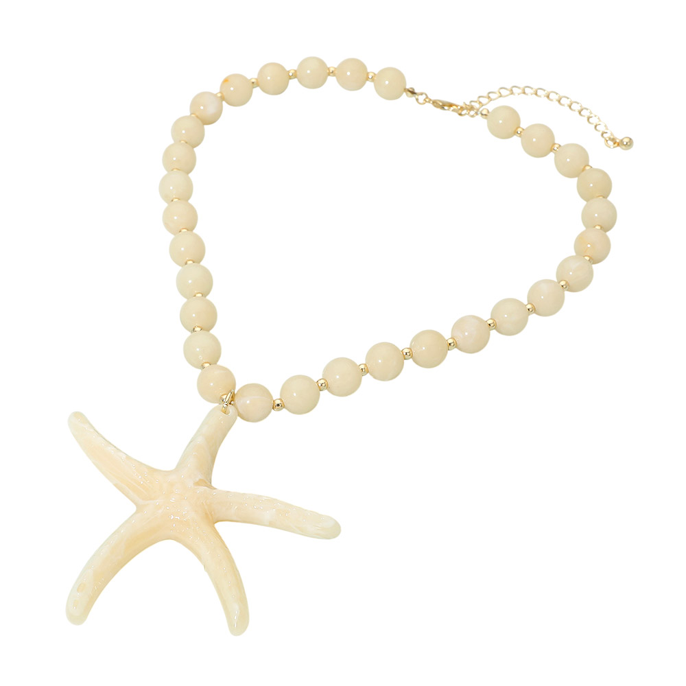 • Eye-catching statement necklace featuring a bold starfish pendant paired with smooth beaded detailing and an adjustable chain for versatile styling. A standout accessory for beach-inspired looks, resort wear, summer outfits, and casual fashion, perfect for adding playful charm and a coastal-inspired accent.