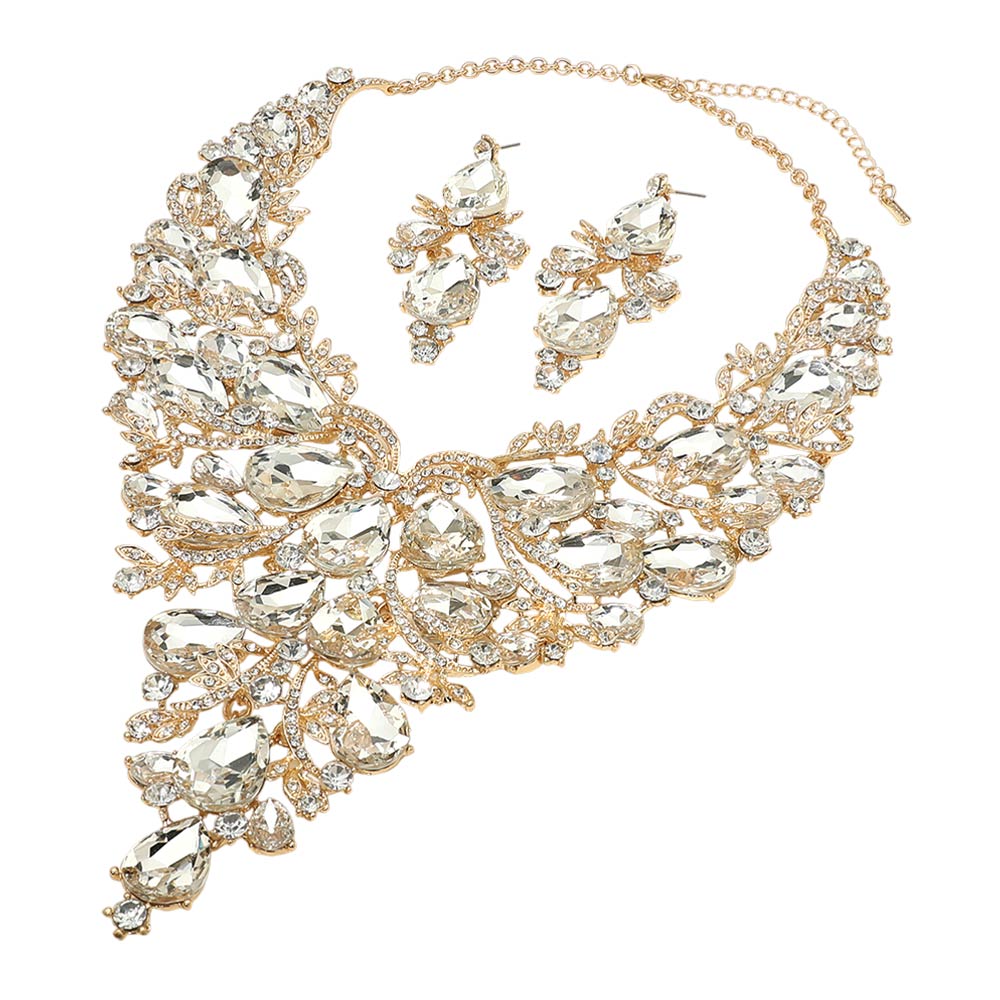 Bold Teardrop Stone Cluster Statement Evening Necklace