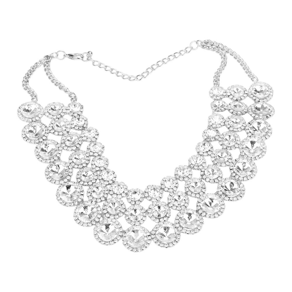 • Elegant statement necklace and earrings set featuring layered round-cut gems with dazzling shine. Perfect for parties, weddings, or evening events, this bold accessory adds glamour and sophistication to any outfit, making it a must-have for standout fashion styling.