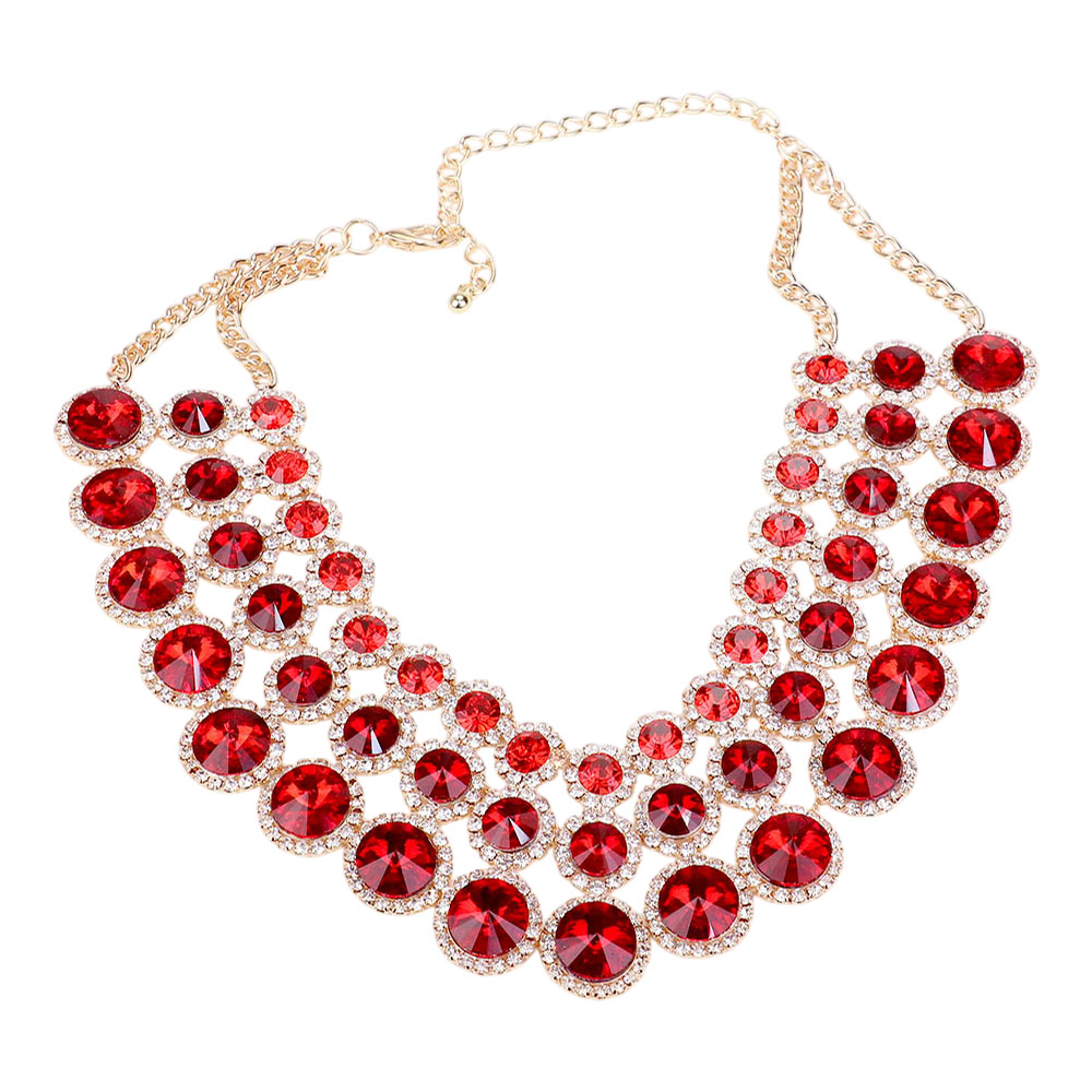 • Elegant statement necklace and earrings set featuring layered round-cut gems with dazzling shine. Perfect for parties, weddings, or evening events, this bold accessory adds glamour and sophistication to any outfit, making it a must-have for standout fashion styling.
