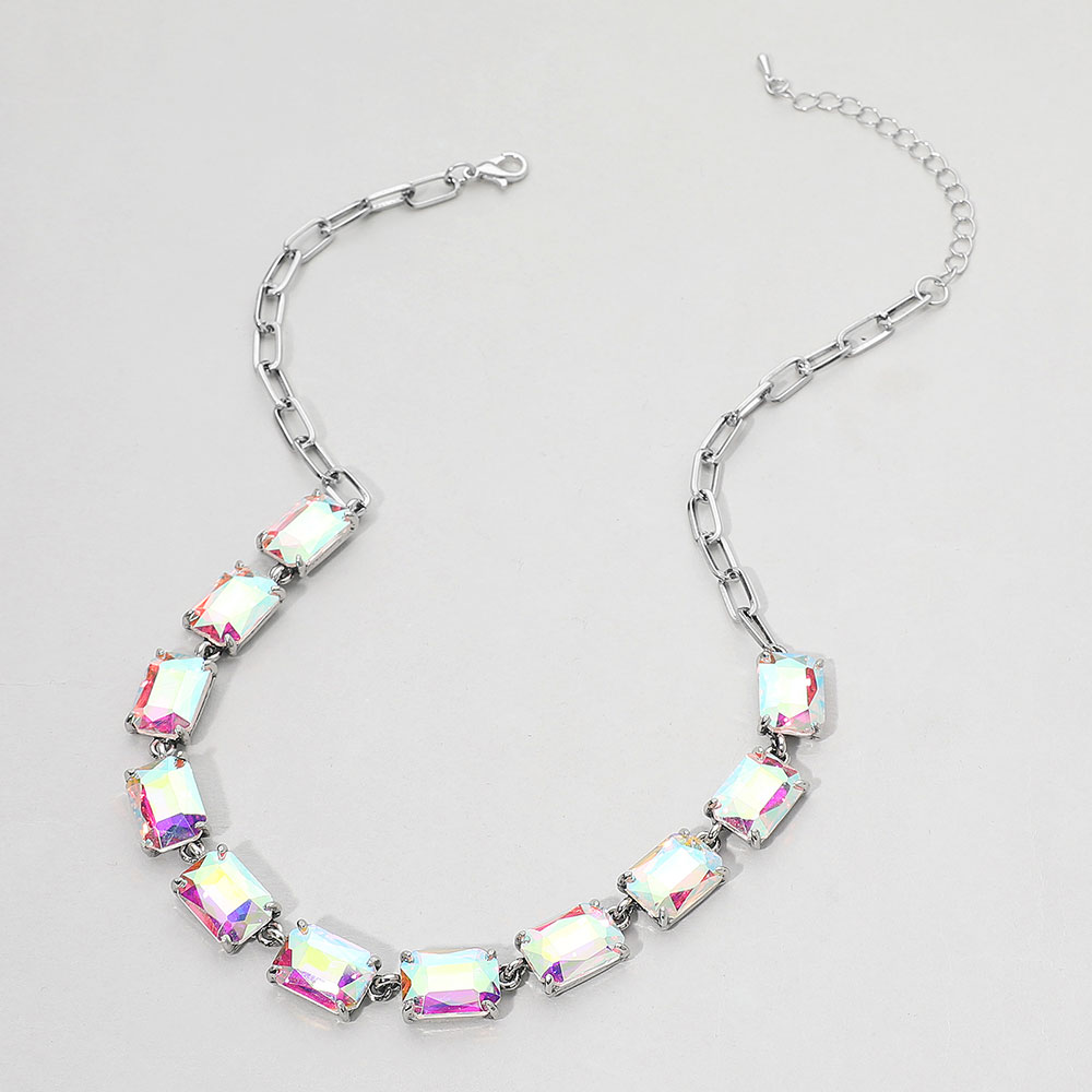 Cushion Rectangular Stone Cluster Link Evening Necklace