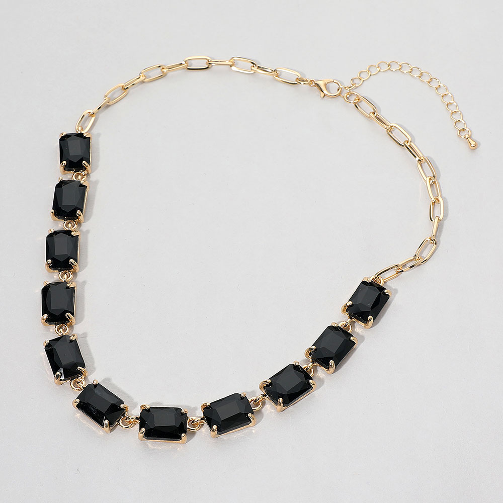 • This elegant gemstone chain necklace features a row of precisely cut stones linked with a sleek chain for a refined, modern look. Its adjustable closure ensures a comfortable fit, making it a sophisticated accessory for formal occasions, evening wear, or adding a statement touch to everyday style.