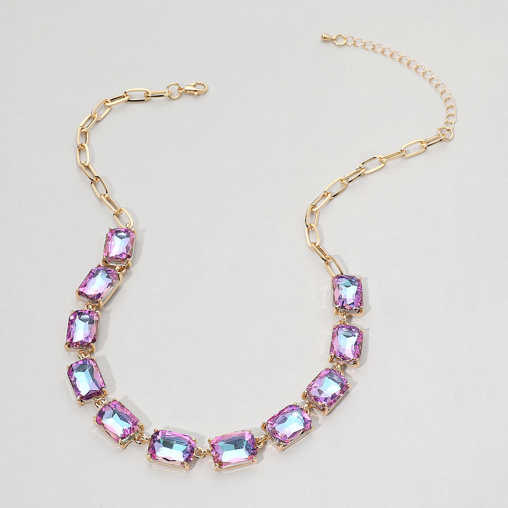 • This elegant gemstone chain necklace features a row of precisely cut stones linked with a sleek chain for a refined, modern look. Its adjustable closure ensures a comfortable fit, making it a sophisticated accessory for formal occasions, evening wear, or adding a statement touch to everyday style.