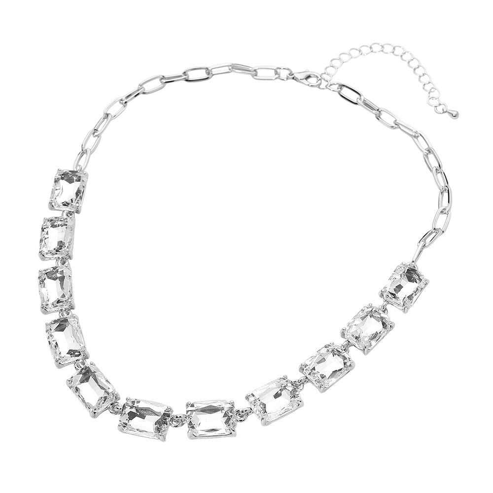 Cushion Rectangular Stone Cluster Link Evening Necklace