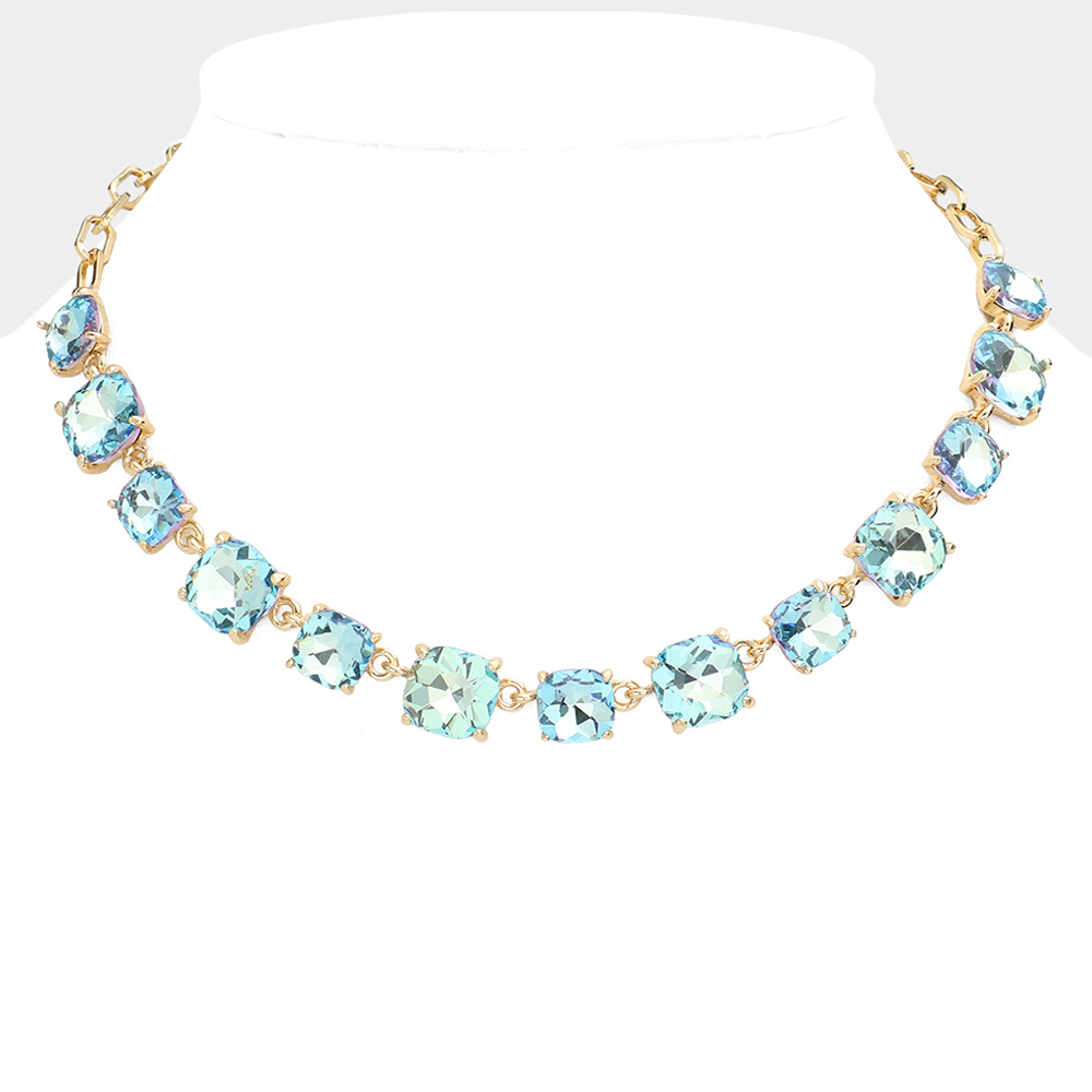 • Elevate your style with this stunning square cut gemstone statement necklace. Featuring shimmering faceted stones linked in a classic design, it offers a chic adjustable fit. Perfect for evening wear, weddings, parties, or adding a sophisticated sparkle to your everyday look.
