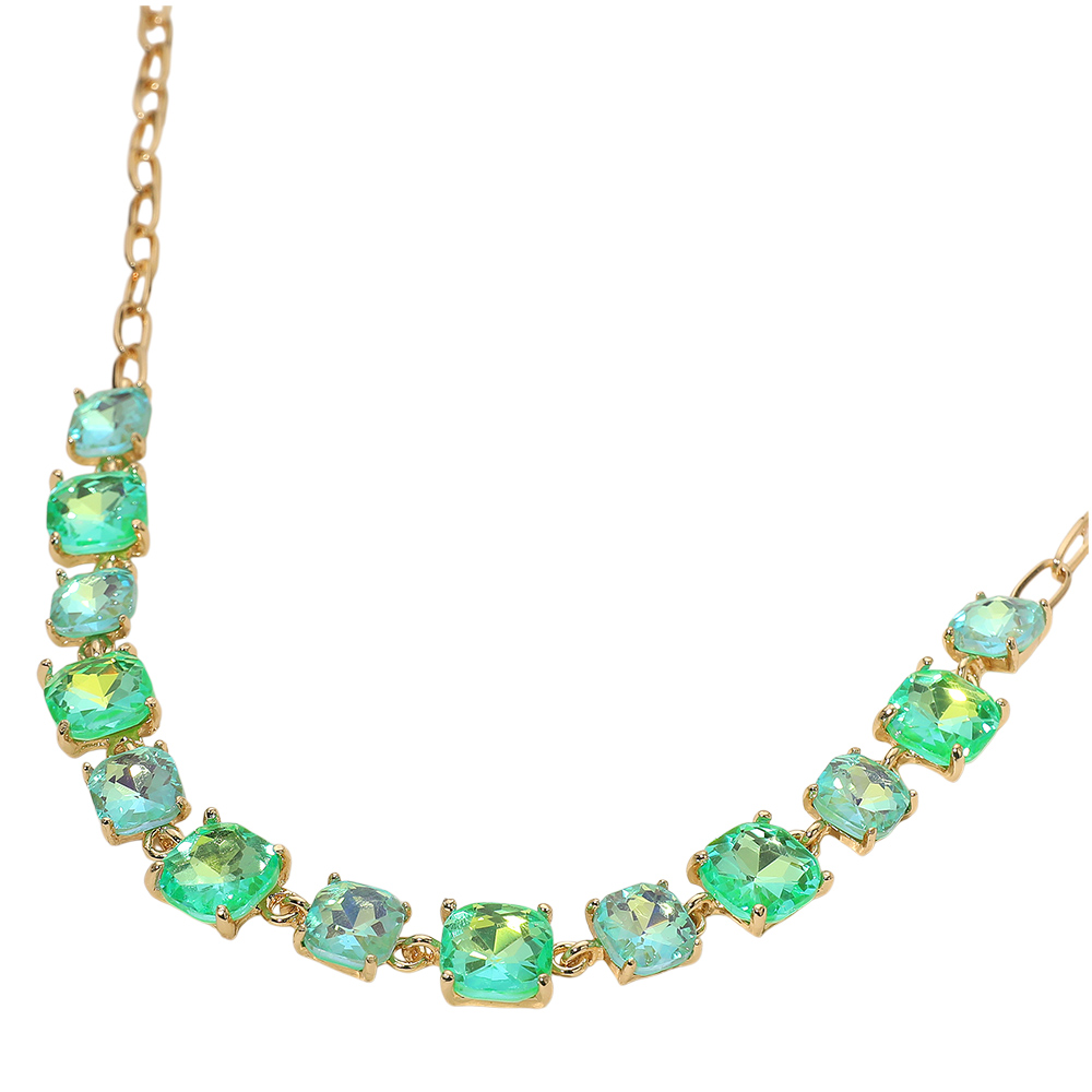 Details • Necklace Size : 16" + 2.75" L • Decor Size : 0.5" L • Elevate your style with this stunning square cut gemstone statement necklace. Featuring shimmering faceted stones linked in a classic design, it offers a chic adjustable fit. Perfect for evening wear, weddings, parties, or adding a sophisticated sparkle to your everyday look. • Lead and Nickel Compliant