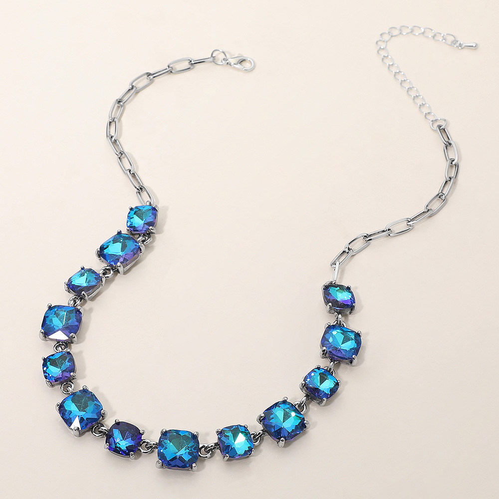 • Elevate your style with this stunning square cut gemstone statement necklace. Featuring shimmering faceted stones linked in a classic design, it offers a chic adjustable fit. Perfect for evening wear, weddings, parties, or adding a sophisticated sparkle to your everyday look.