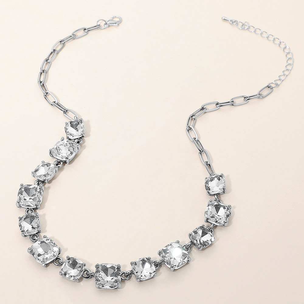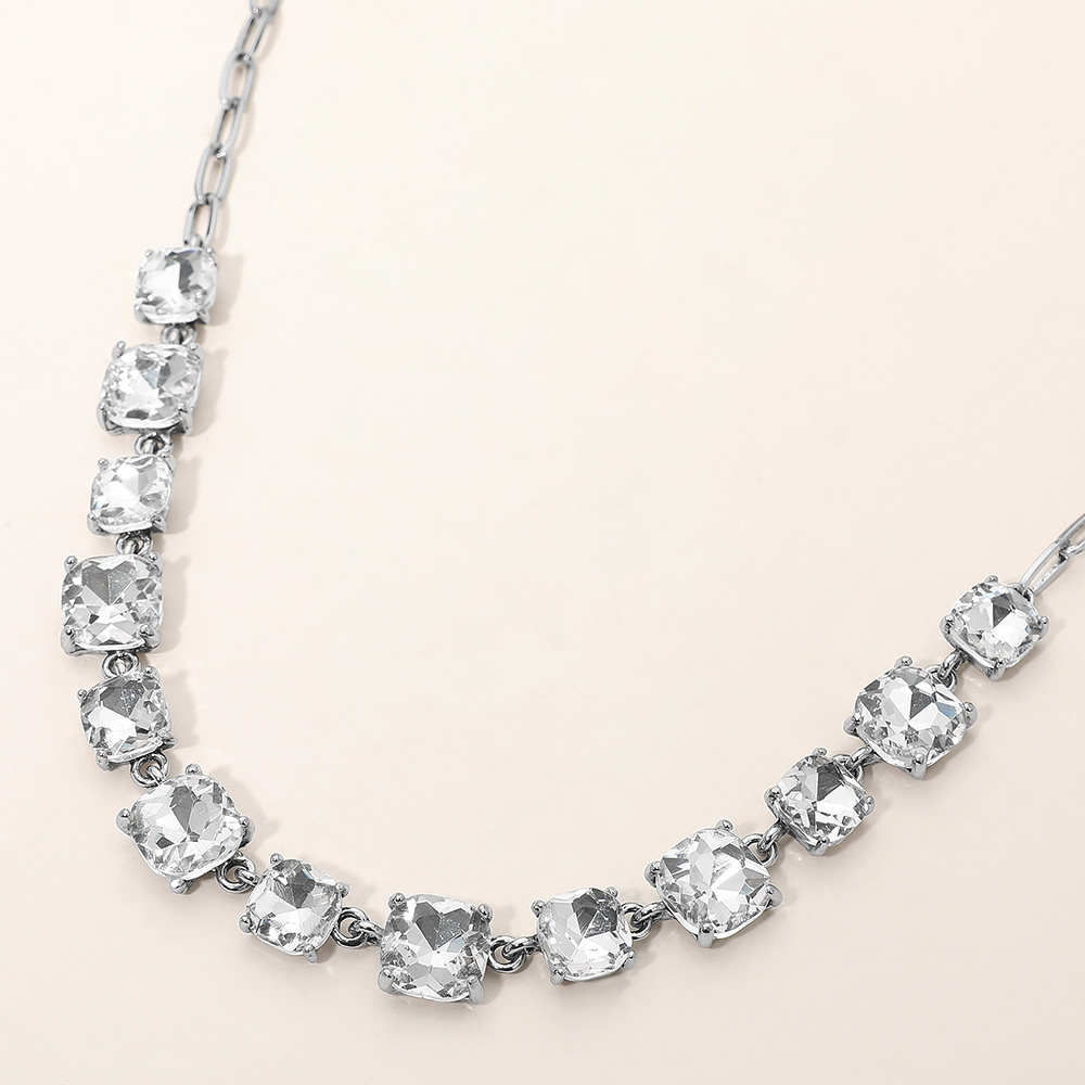 • Elevate your style with this stunning square cut gemstone statement necklace. Featuring shimmering faceted stones linked in a classic design, it offers a chic adjustable fit. Perfect for evening wear, weddings, parties, or adding a sophisticated sparkle to your everyday look.