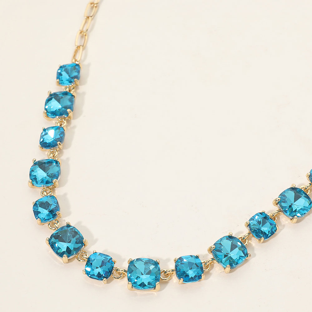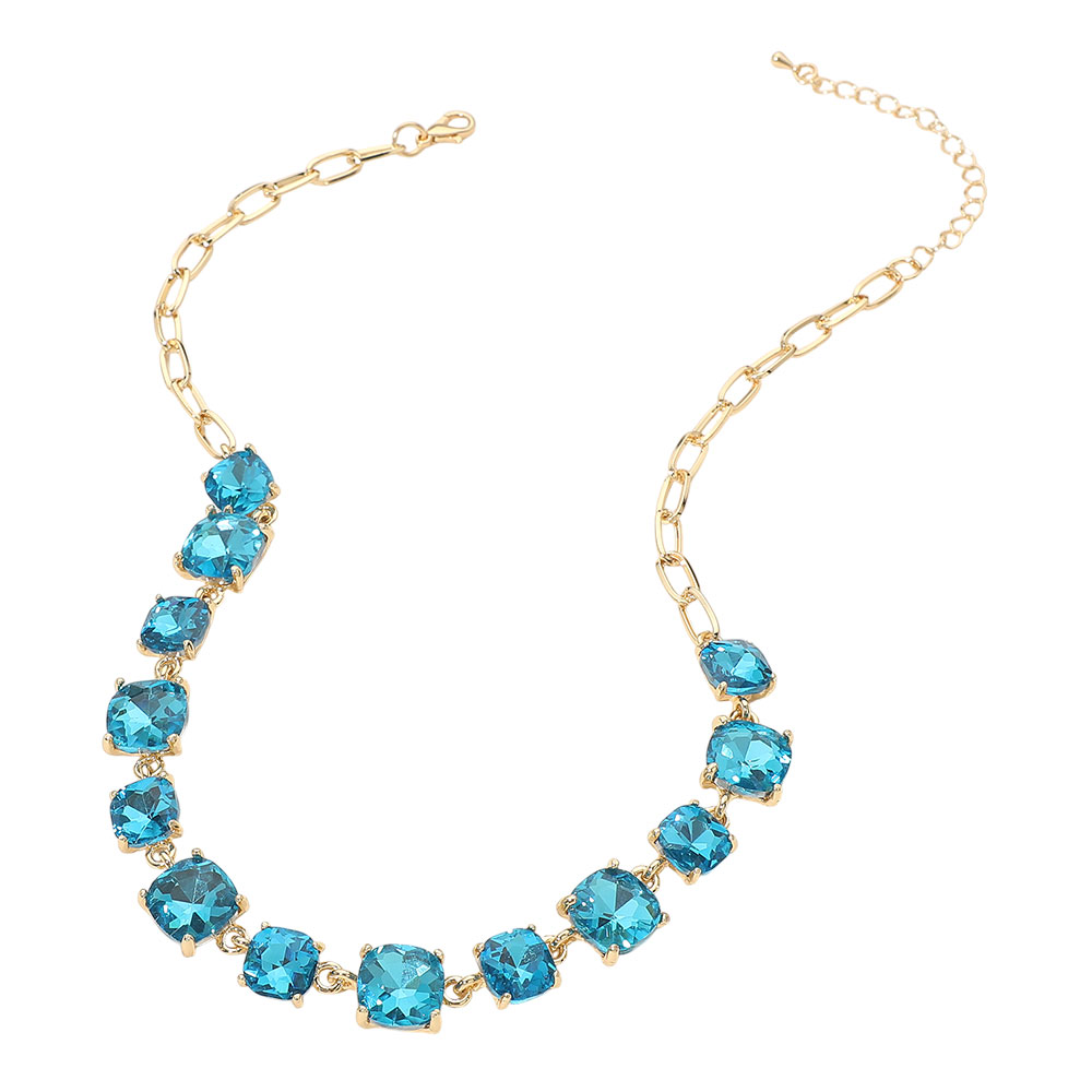 • Elevate your style with this stunning square cut gemstone statement necklace. Featuring shimmering faceted stones linked in a classic design, it offers a chic adjustable fit. Perfect for evening wear, weddings, parties, or adding a sophisticated sparkle to your everyday look.
