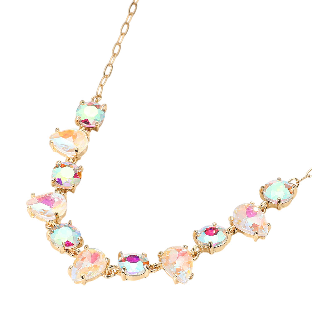 Cushion Teardrop Round Oval Stone Link Evening Necklace