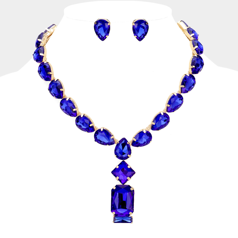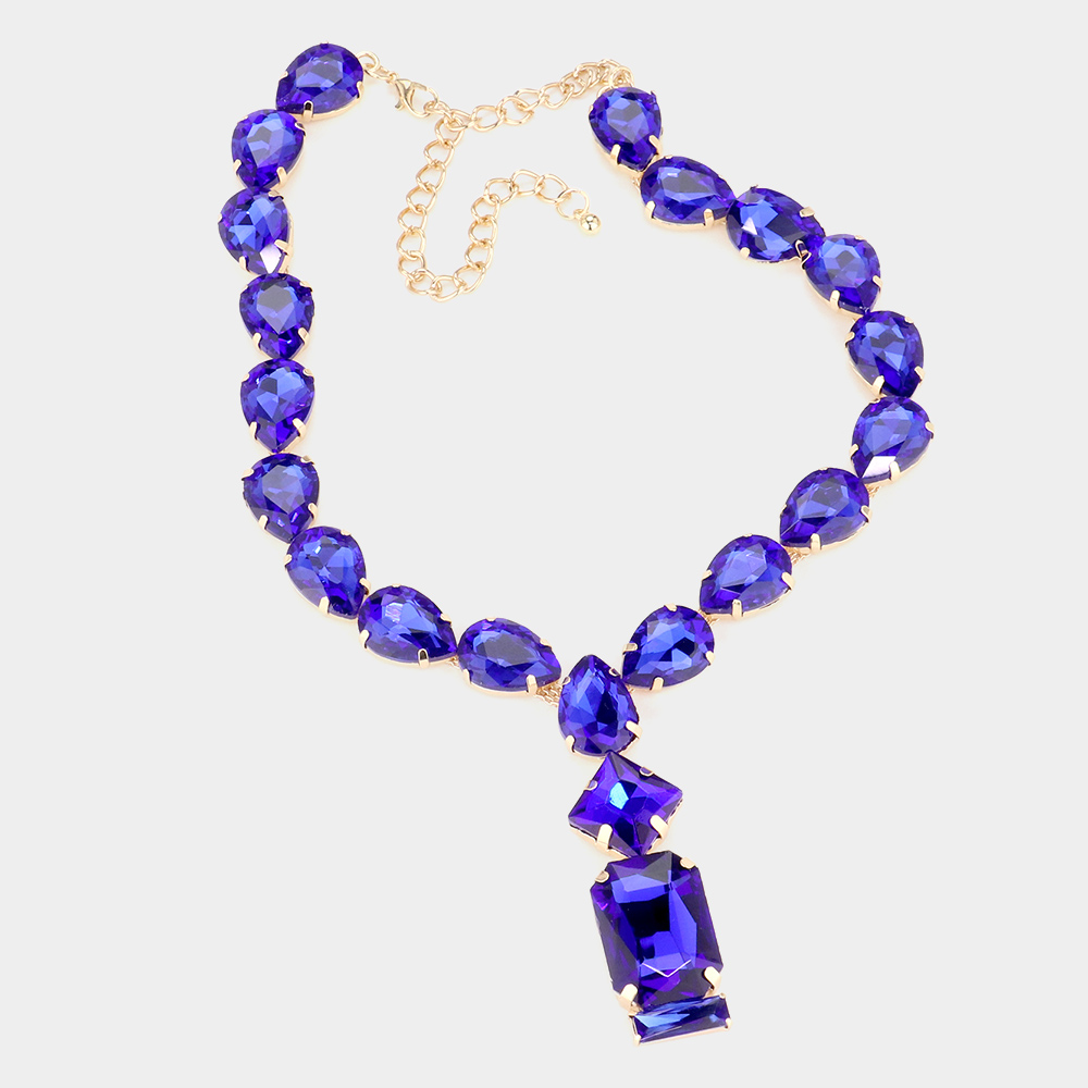 Emerald Cut Stone Cluster Pendant Pointed Teardrop Stone Cluster Link Evening Necklace
